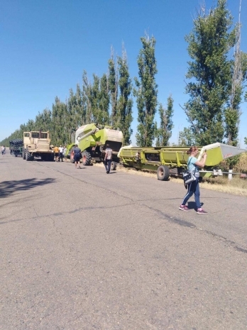 — Поступила информация, что комбайны Теника идут сюда убирать наши поля. Через полчаса люди были здесь, даже пенсионеры. На трассе мы остановили два комбайна, мы их пропустили, а потом перекрыли трассу трактором. Они пока никуда не уезжают, — рассказала сотрудница госпредприятия.