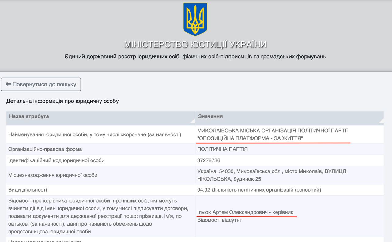 В Стратегический совет «Оппозиционной платформы — За жизнь» входят Виктор Медведчук, Вадим Рабинович, Сергей Левочкин и Юрий Бойко. 29 апреля журналист Олег Деренюга написал в своем Telegram, что на выборы в Николаеве партию «ОПЗЖ» поведет Артем Ильюк.