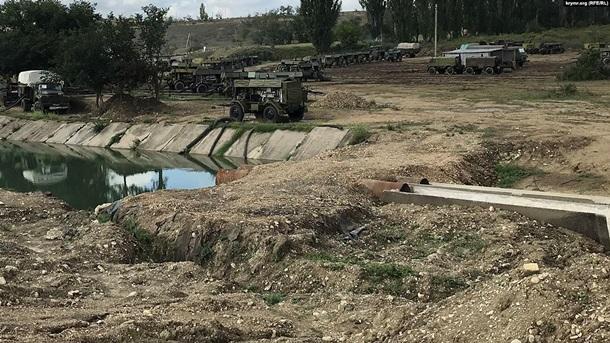 Сообщалось, что в аннексированном Крыму российские трубопроводные войска перекрыли земляной плотиной реку Биюк-Карасу ниже Белогорского водохранилища.