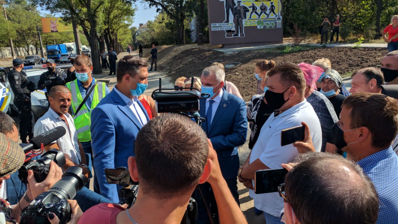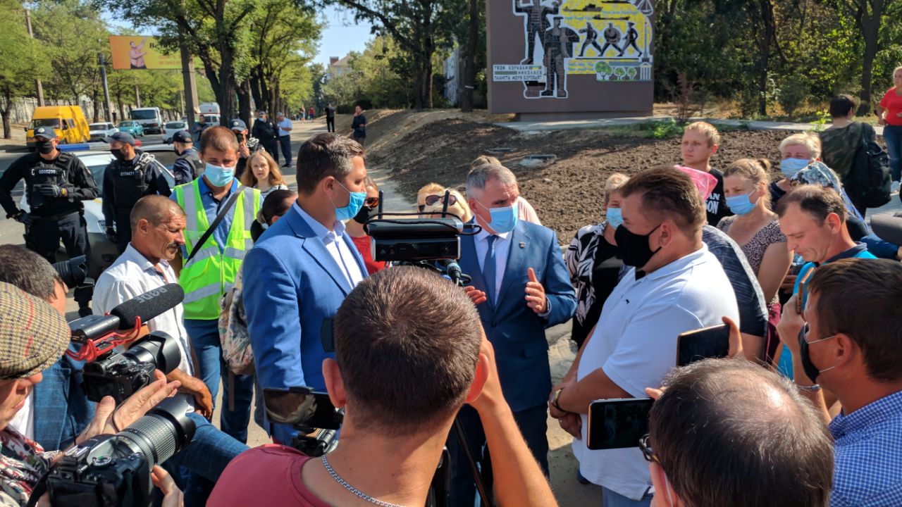 По состоянию на 14:20 к протестующим приехал Николаевский городской голова Александр Сенкевич.