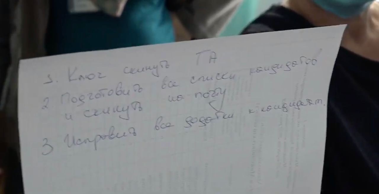 Среди документ была найдена записка, в которой одним из пунктов была необходимость исправить «все додатки к кандидатам». Что именно имелось в виду, присутствующие члены избиркома не знают. По всем изъятым документа будет проведена опись.