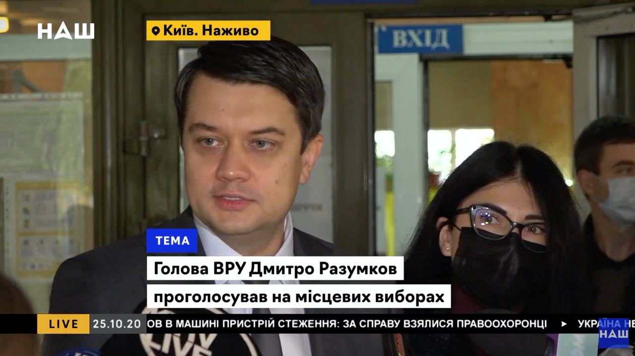 9:48 Спикер парламента Дмитрий Разумков проголосовал на местных выборах. В комментарии журналистам он рассказал о том, что бюллетень большой и сложный.