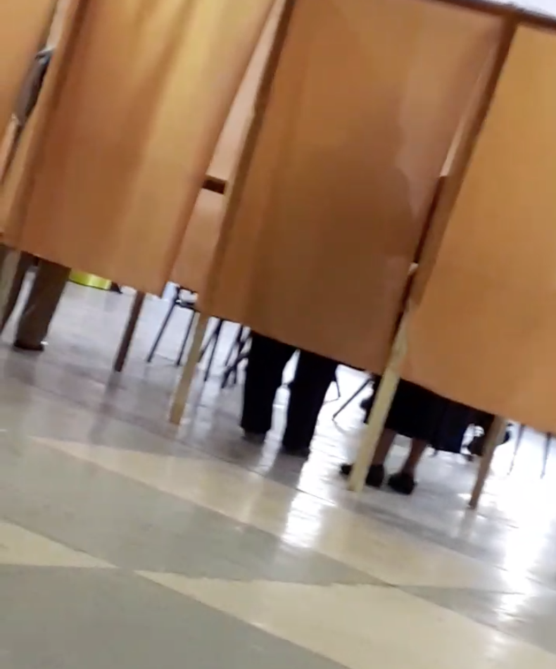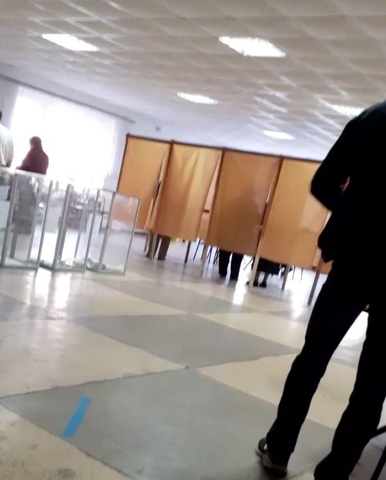 11:28 В 45 школе на участке №480855 зафиксирован подвоз избирателей. Голосующих пожилого возраста проводят прямо в кабинки.