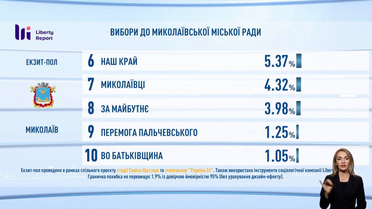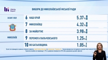 17:41 В партии «Батьківщина» заявили, что по данным их подсчета, партия набрала 5,24% голосов и заходит в Николаевский областной совет.