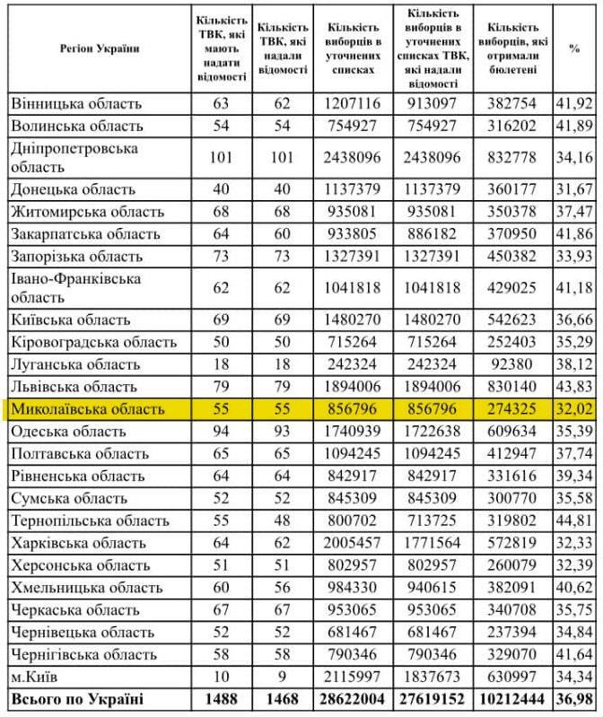 В избирательном штабе партии «Пропозиция» предоставили данные 96% участков о явке на округах в Николаеве: