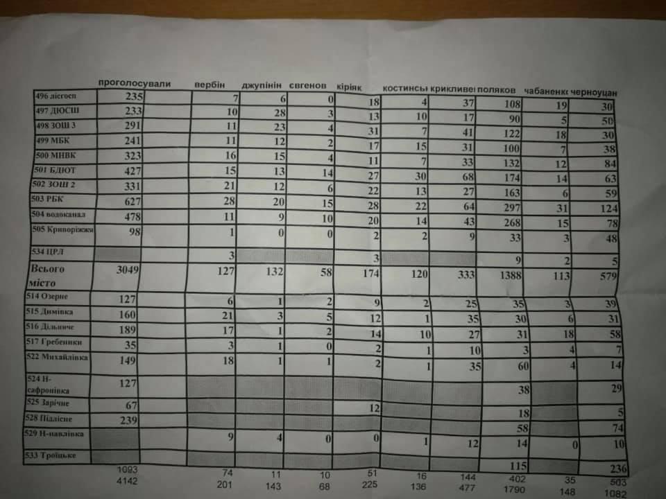 После того, как районная ТИК закончит прием уточненных протоколов, она в присутствии членов УИК возьмется пересчитывать бюллетени и составит новые протоколы. Так, бюллетени по выборам депутатов горсовета и городского головы будут пересчитаны на участках 480880, 480936, 480917, 480898, 480890. На участках 480885, 480886, 480887, 480909, 480926, 480876, 480925, 480913, 480875, 480884, 480922 будут пересчитывать бюллетени по выборам депутатов горсовета.
