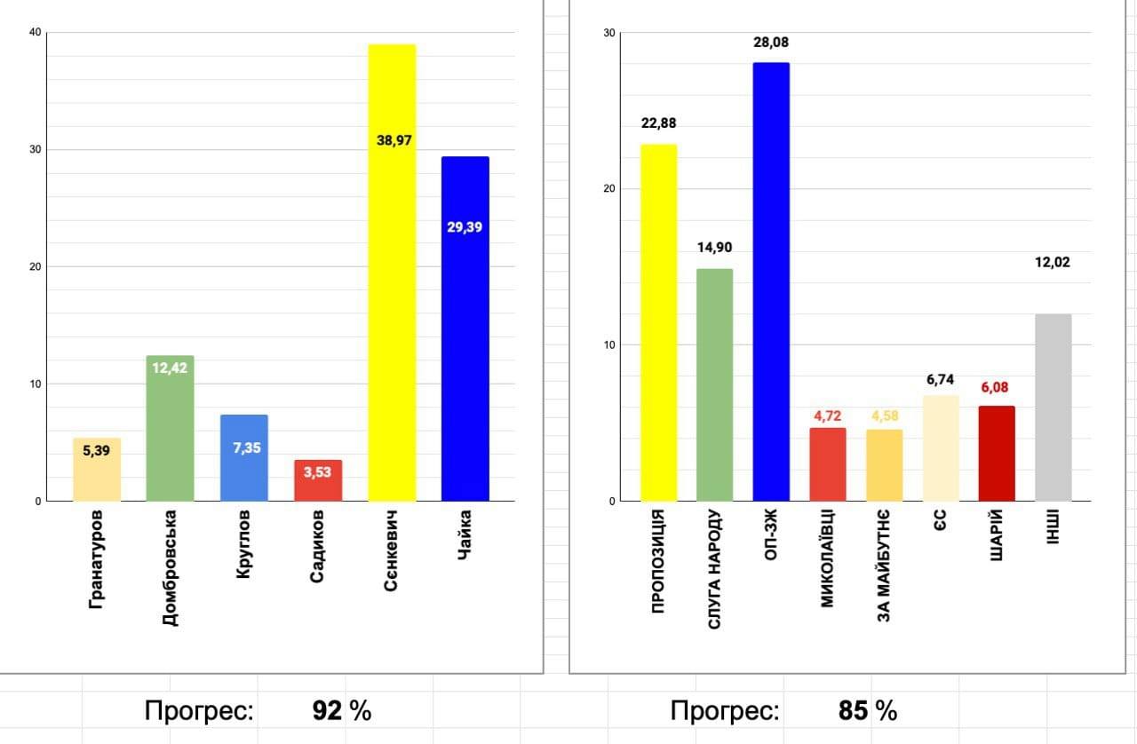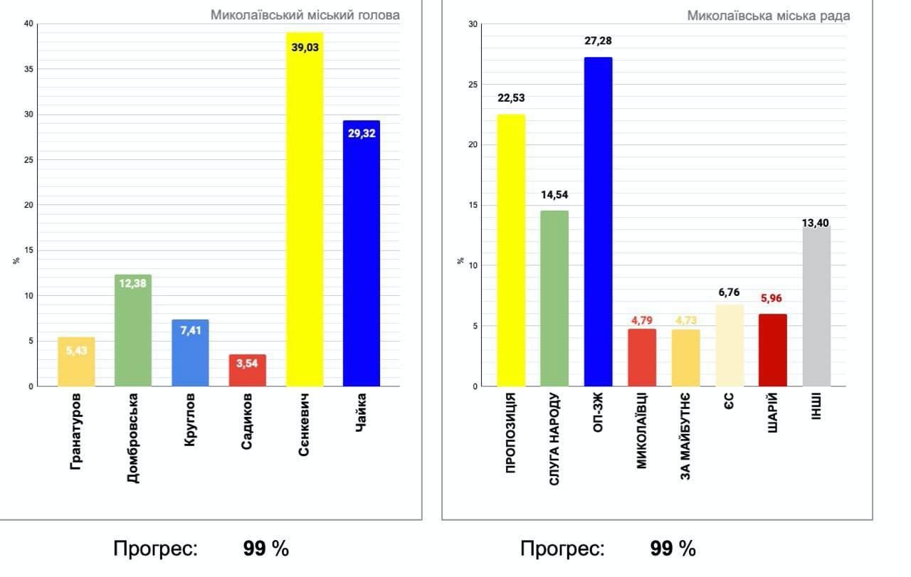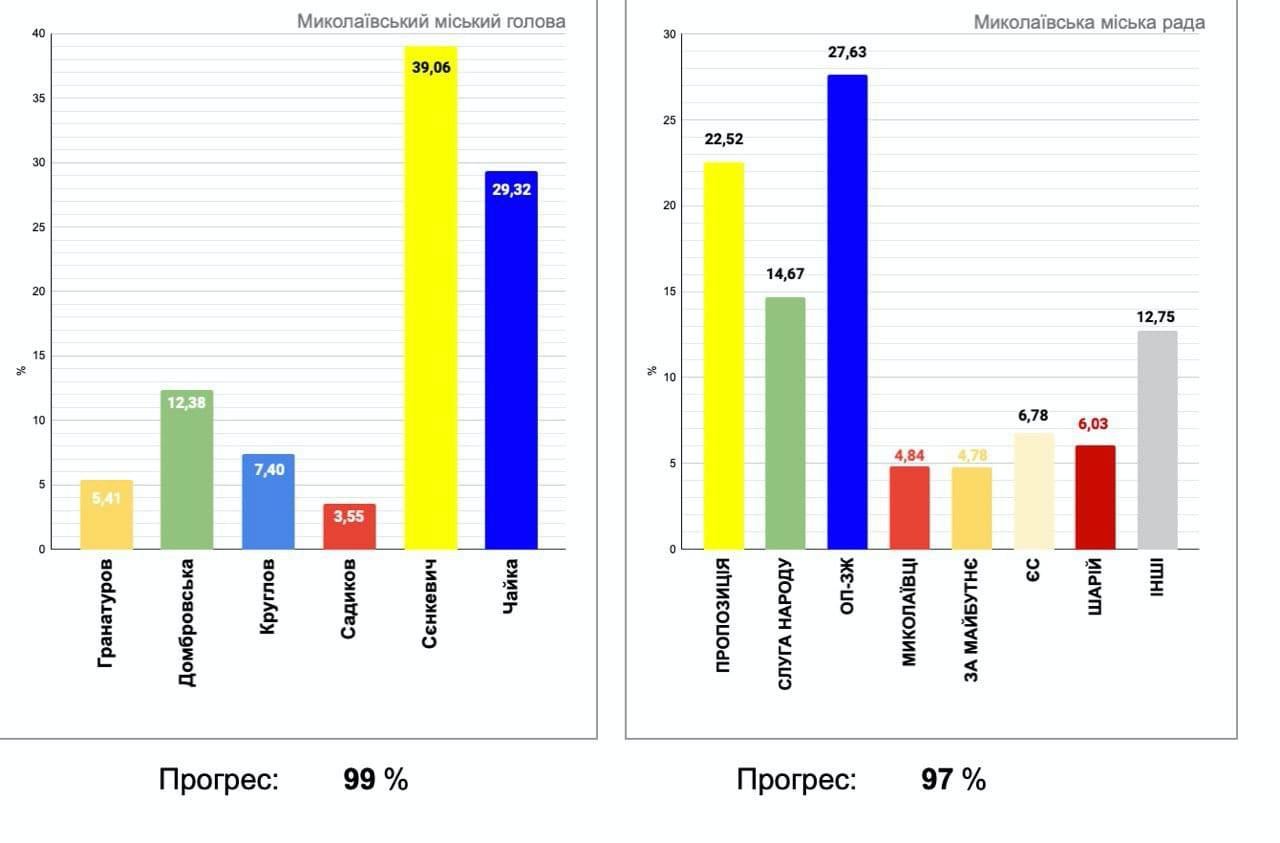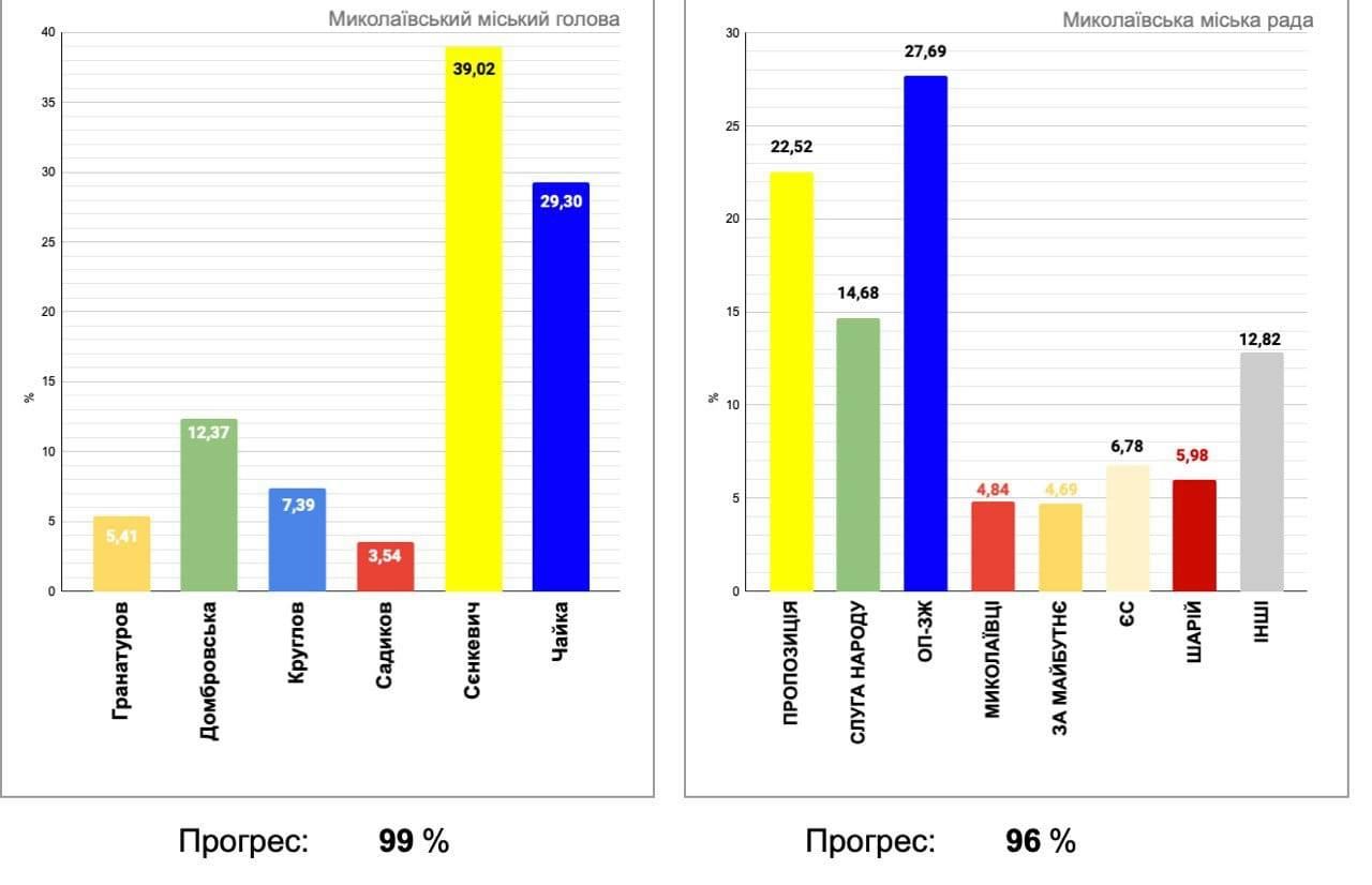 17:10 В «Пропозиции» посчитали уже 99% протоколов по выборам мэра Николаева и 96% по выборам в горсовет.