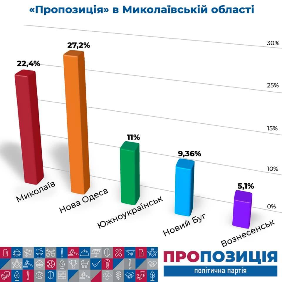 19:58 Партия «Пропозиция» опубликовала свои результаты на выборах в Николаевской области.