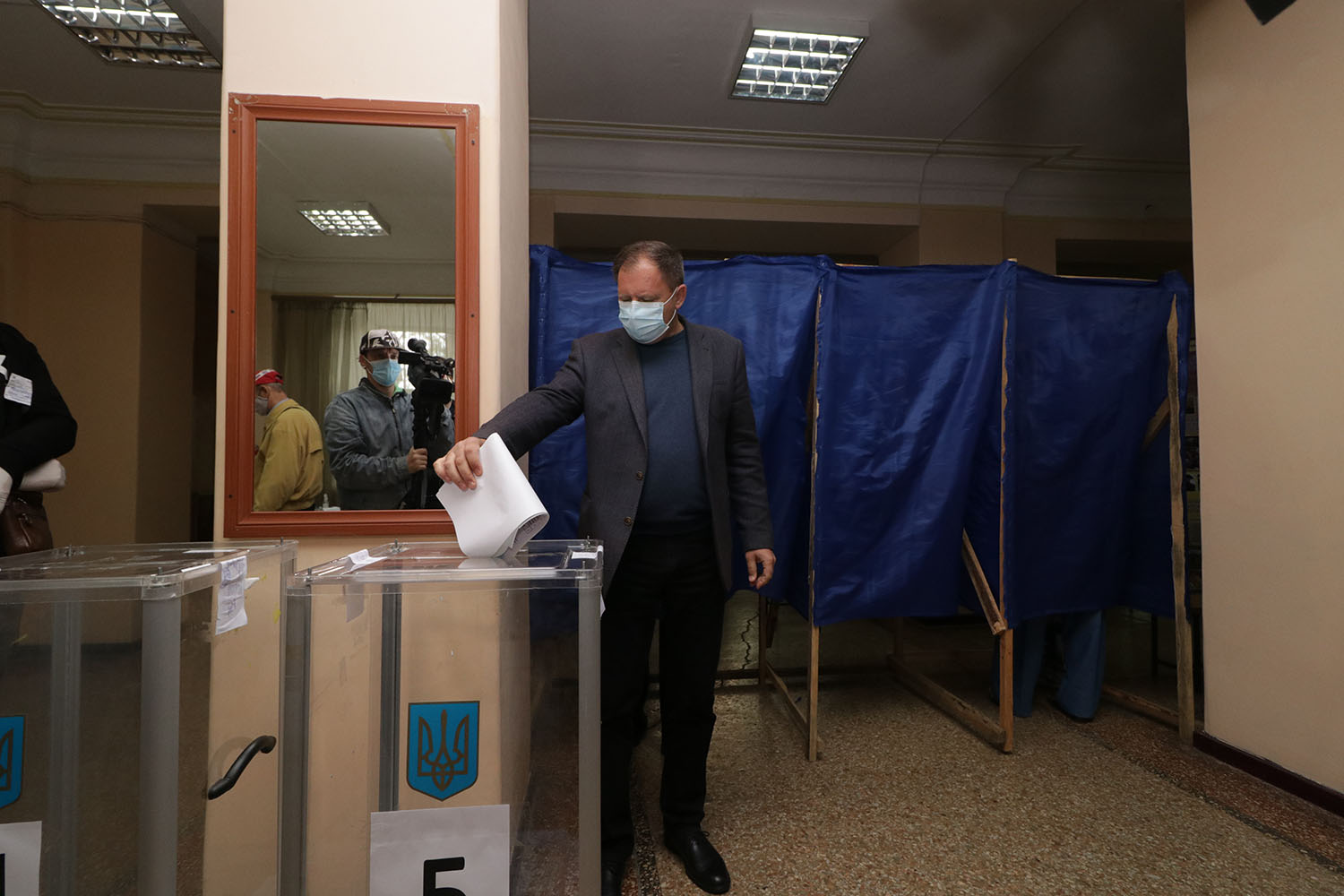 Кандидат на пост Николаевского городского головы от партии «Оппозиционная платформа - За жизнь» Владислав Чайка пришел голосовать на избирательный участок в Николаеве в компании народного депутата, руководителя региональной организации «ОПЗЖ» Юрия Загороднего.