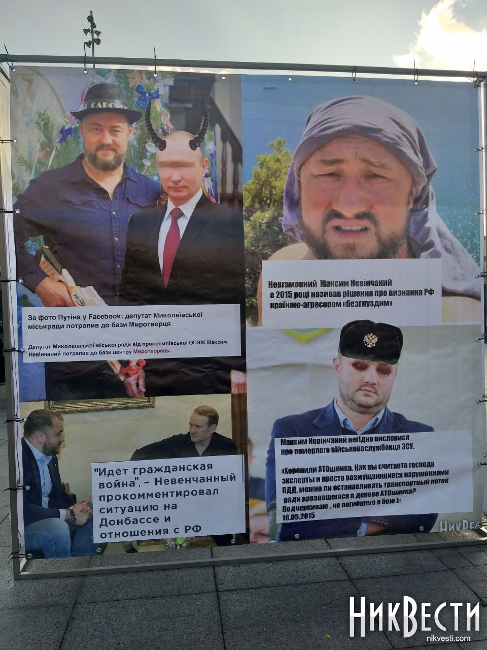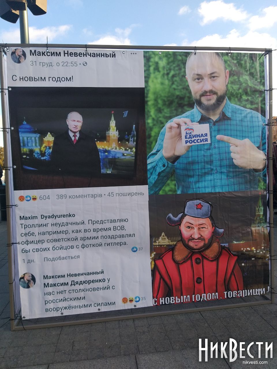 — В праздничные дни недодепутат Максим Невенчанный решил спровоцировать, или не знаю, что сделать… Он поздравил николаевцев президентом Путиным. Все знают, что у нас 7-й год идет война, что это страна-агрессор, а Путин - это диктатор, который является не только страной-агрессором по отношению к нашей стране, а и по отношению к многим странам, которые ее (Россию, - прим.) окружают. Для нас это возмущение. Поскольку непонимание простых вещей и вынесение… Он является публичным лицом, он депутат, ему доверяют николаевцы, и он так себя ведет. По моему мнению, это недопустимое поведение депутата, который пришел к власти на протестных настроениях. Не все люди голосовали и поддерживают его действия. Я думаю, что если спросить его коллег из фракции «ОПЗЖ», то даже не все депутаты будут поддерживать это, - сказал Никита Плеханов, глава партии «Национальный корпус» в Николаеве.