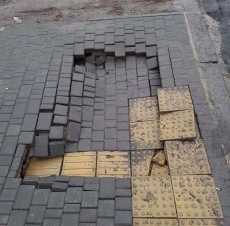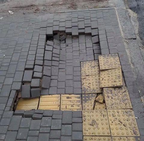 — Каждый раз, когда я вижу новый тротуар в своём городе — я одновременно ощущаю и радость и грусть. Радуюсь, потому что имею возможность ехать не по трассе и грущу, потому что не имею возможности ходить по этой поверхности. Когда же я вижу город, который подобно Атлантиде постепенно уходит под воду, а тротуар, как косметика с AliExpress — смывается при первой же капле, попавшей на него, то в душе кроме как желания взять подрядчика и тыкать носом в эти руины со словами «кто это сделал» не возникает. На фото, которые Вы видите, пример того как не кладут плитку, а ложат на неё, а вместе с ней и на нас с вами, — рассказал Юрий Степанец.
