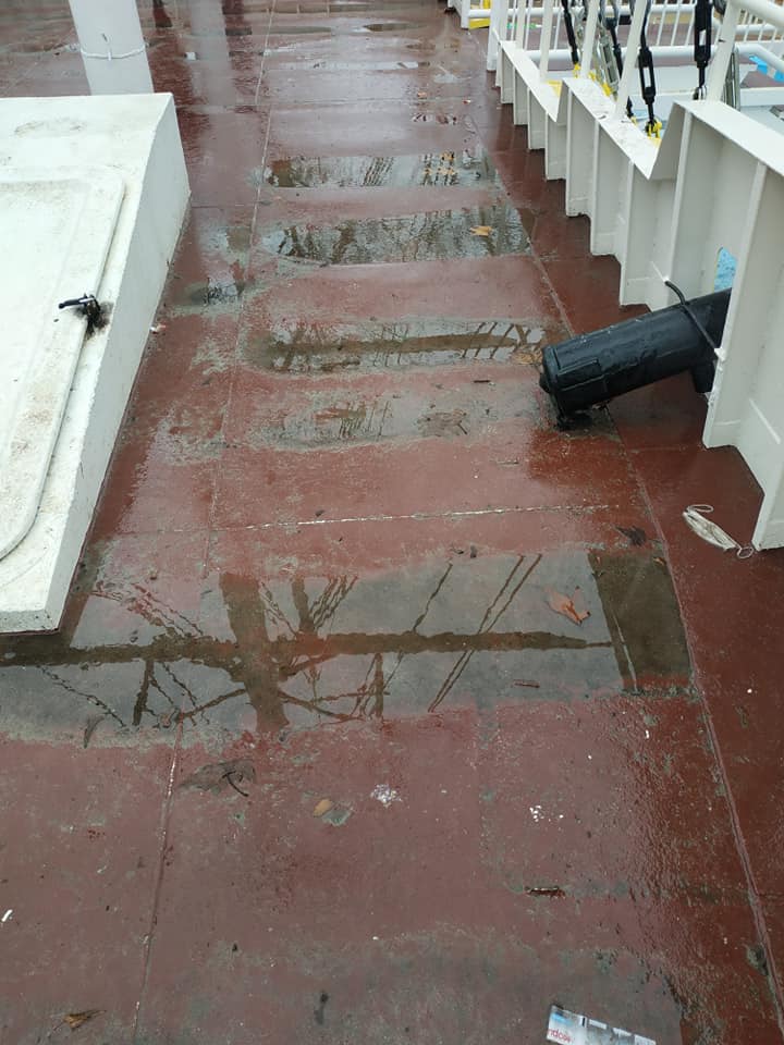 Александр Плюснин отметил, что часть элементов корабля не были полностью закрашены, а его палуба проржавела и пошла «волнами». Также, по его словам, есть вопросы к безопасности самого объекта, так как некоторые элементы корабля закреплены обыкновенной проволокой.