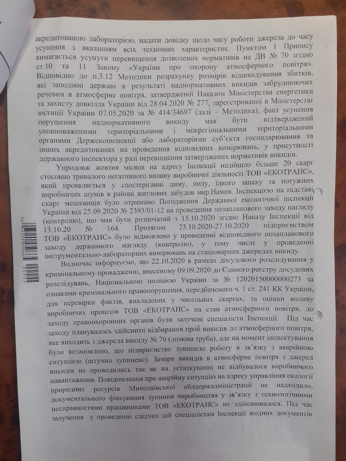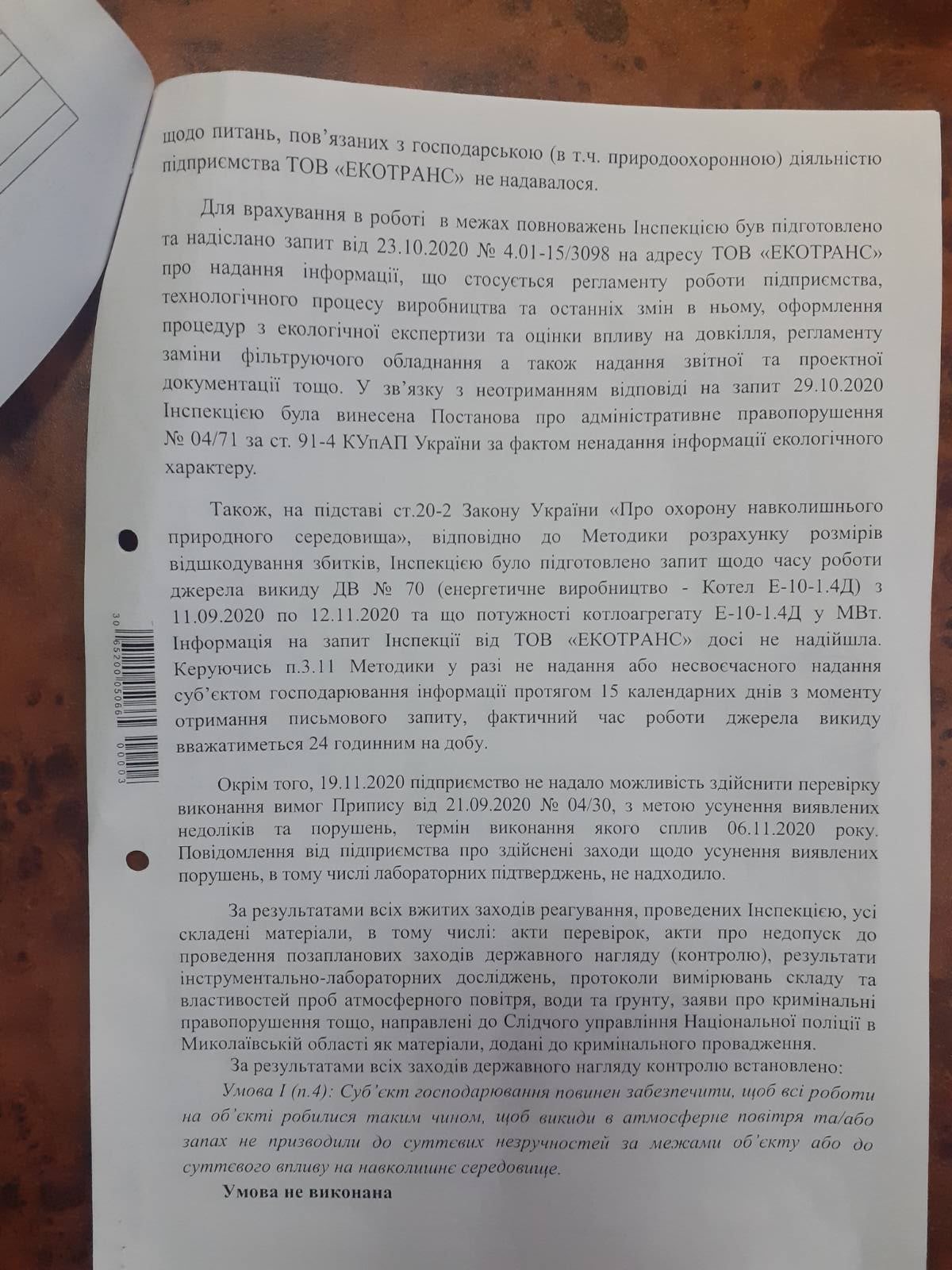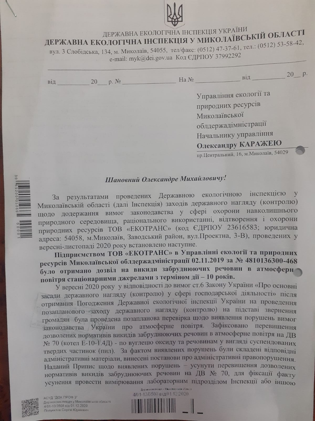 Ранее сообщалось, что глава экологической комиссии областного совета Алла Ряжских возмутилась, что управление экологии и природных ресурсов Николаевской ОГА выдало в 2019 году заводу «Экотранс» новое разрешение на выбросы, несмотря на то, что производственная мощность предприятия увеличалась.