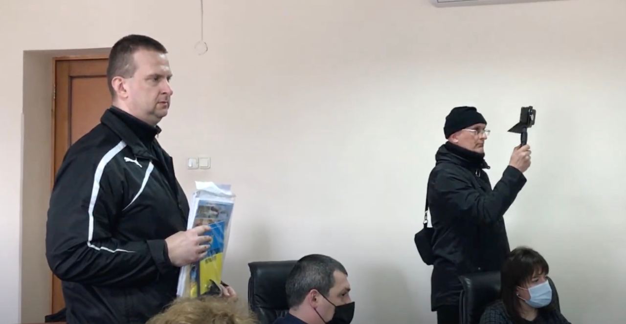 Спустя некоторое время в облгосадминистрацию приехал наряд полиции, которые составили админпротоколы на Игоря Савицкого и еще одного журналиста, который снимал на видеокамеру заседание комиссии.