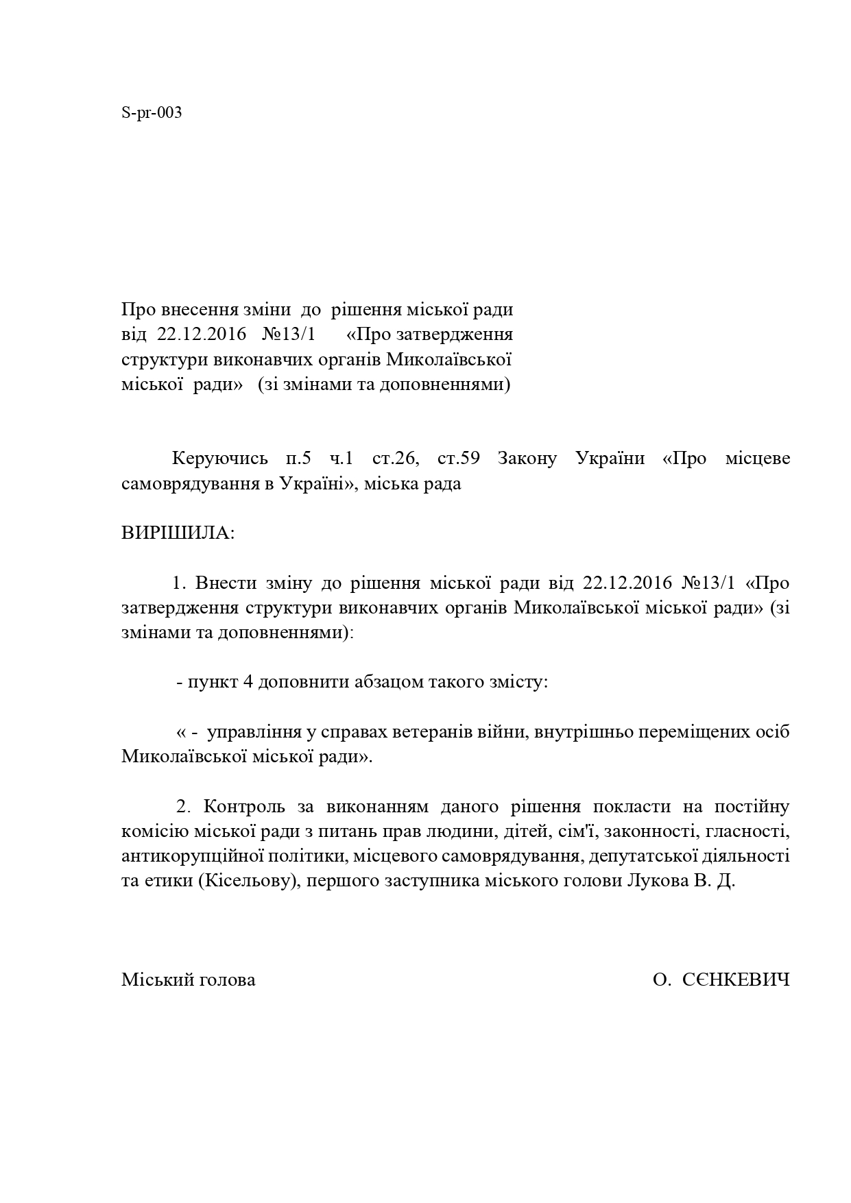 Кроме этого, Александр Сенкевич дал распоряжение создать управление по делам ветеранов войны, внутренне перемещенных лиц Николаевского городского совета.