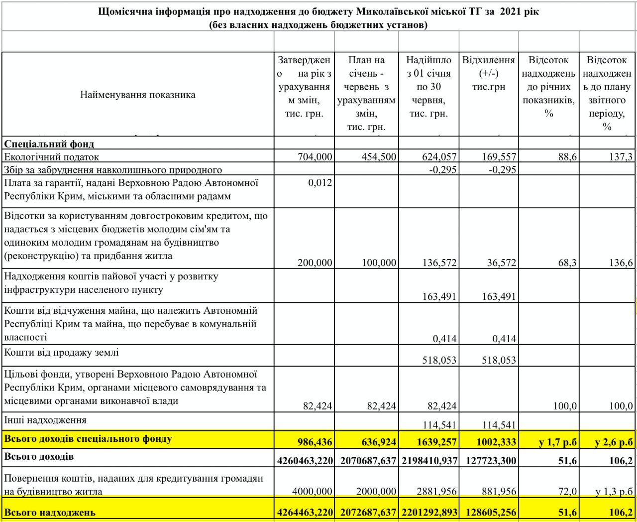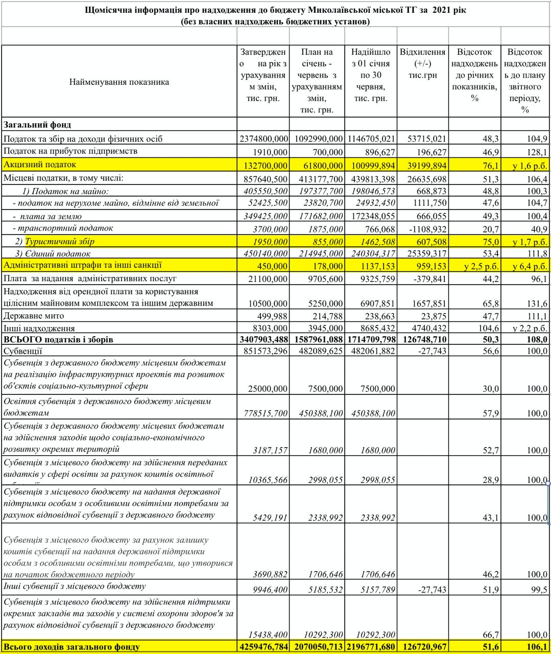 По итогам 6 месяцев 2021 года в бюджет Николаева поступило 2 миллиарда 201 миллион 292 тысячи гривен, что составляет 51,6% от плана поступлений на год.
