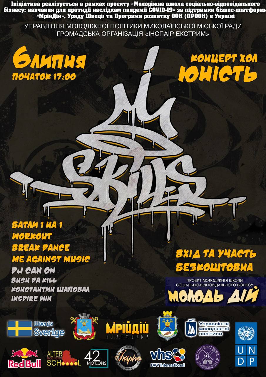 Фестиваль уличных культур проводила общественная организация «Инспаир Экстрим» и Управление молодежной политики Николаевского горсовета при поддержке ОГА, «МрiйДiй», правительства Швеции и ПРООН.