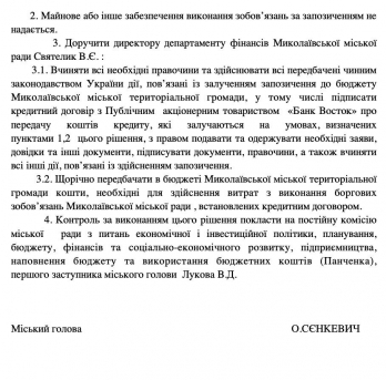 Вопрос о взятии кредита вынесен на рассмотрение сессии Николаевского городского совета, которая запланирована на завтра, 30 июля. Проект решения был опубликован на сайте мэрии 27 июля.