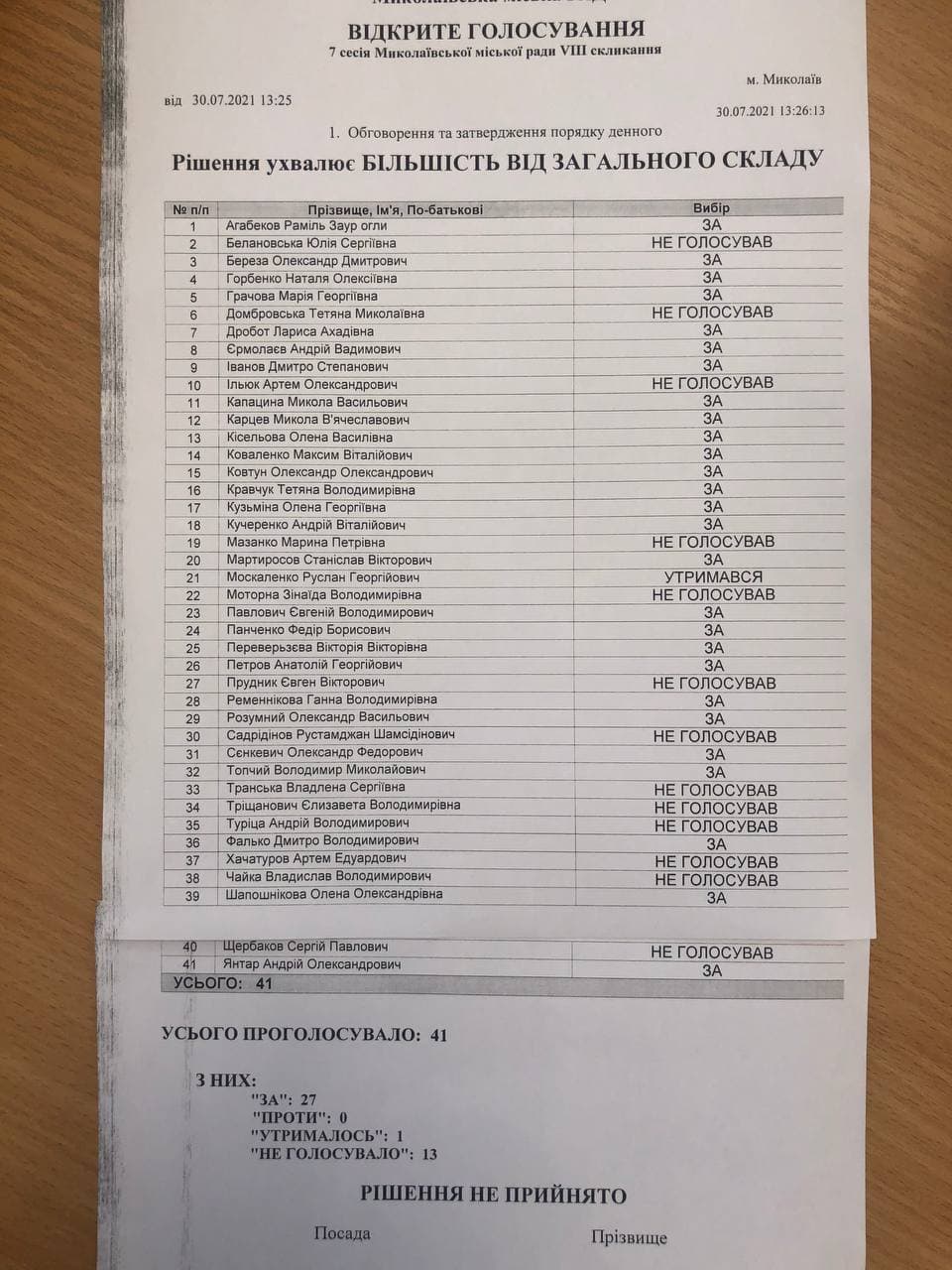 «За» проголосовали 27 депутатов при минимально необходимых 28 голосах, это была вторая попытка включить вопрос, изначально он собрал лишь 20 голосов.