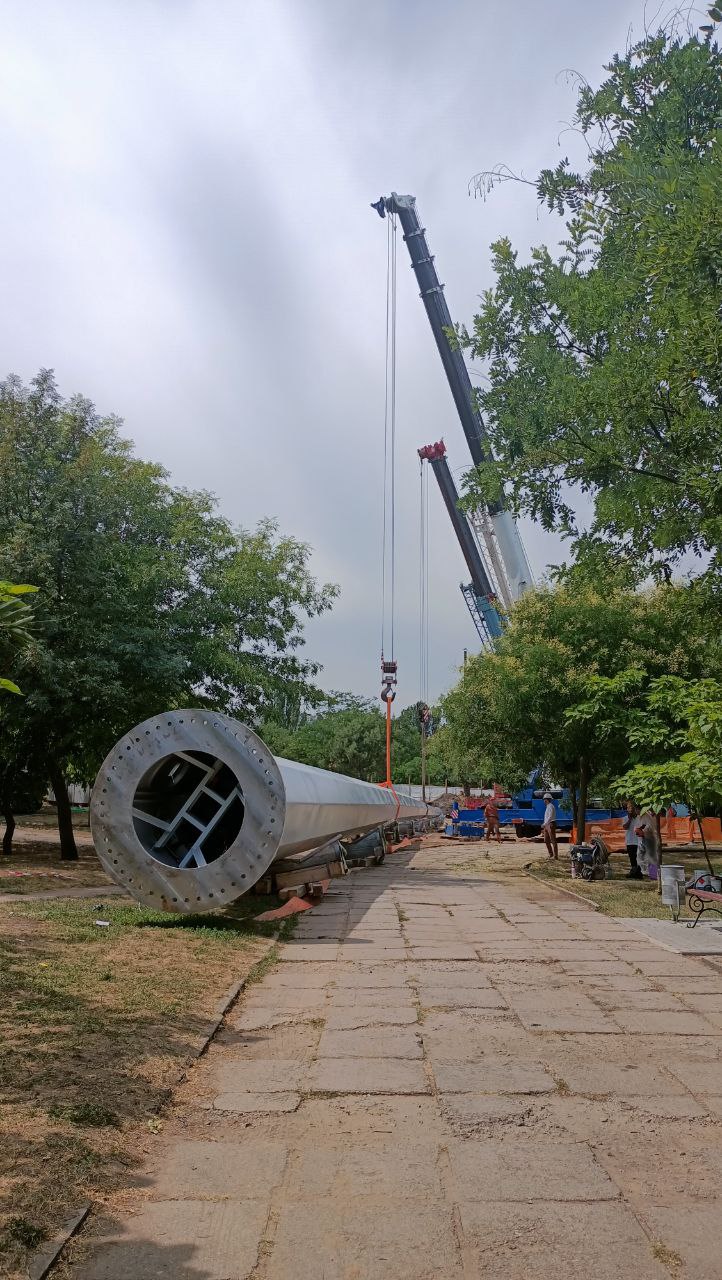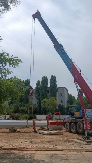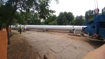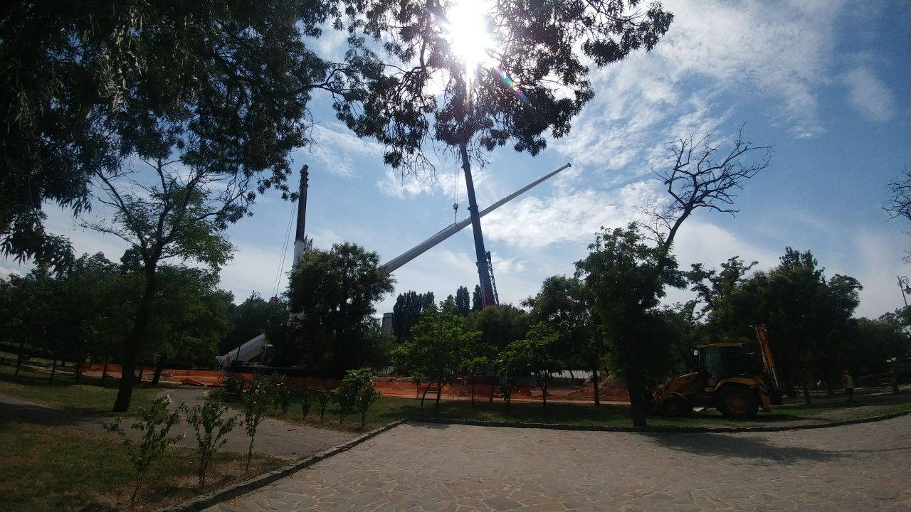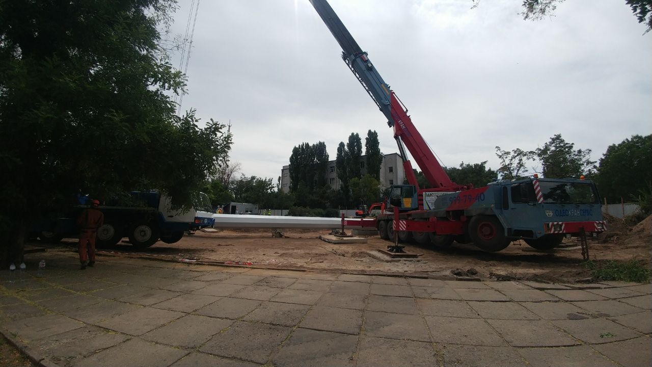 В среду днем, 4 августа, в Николаеве пытаются установить огромный флагшток в сквере «Юных героев».