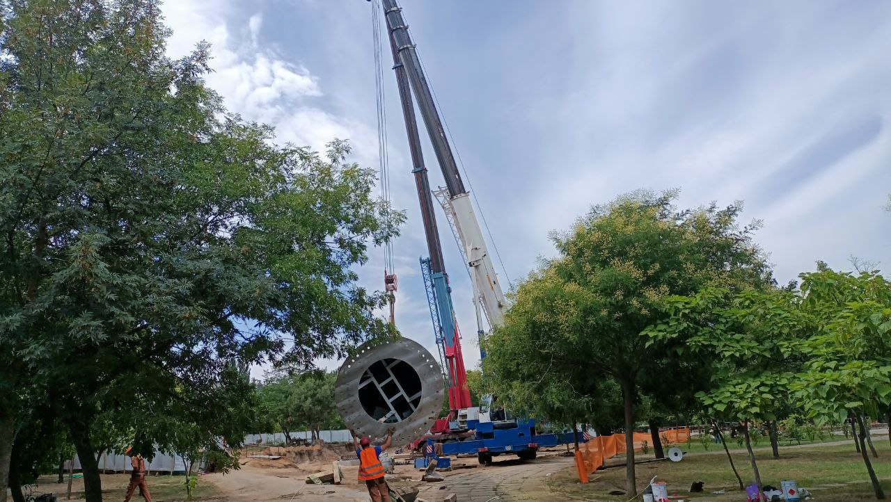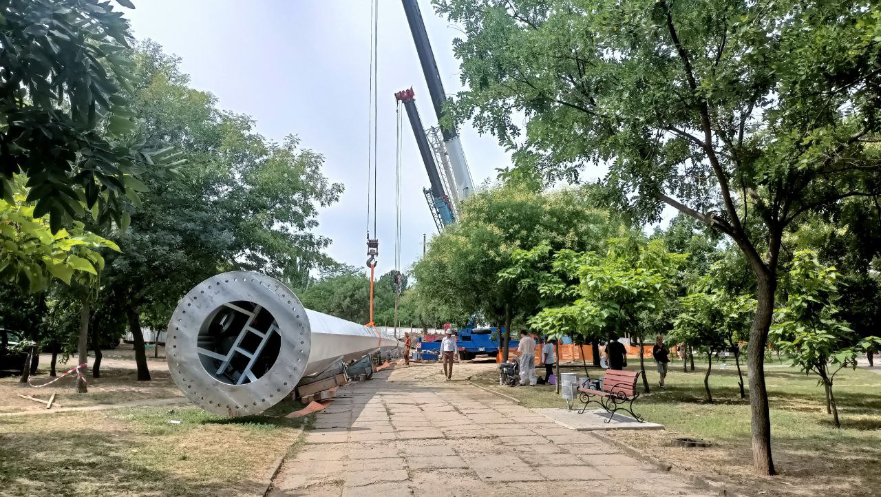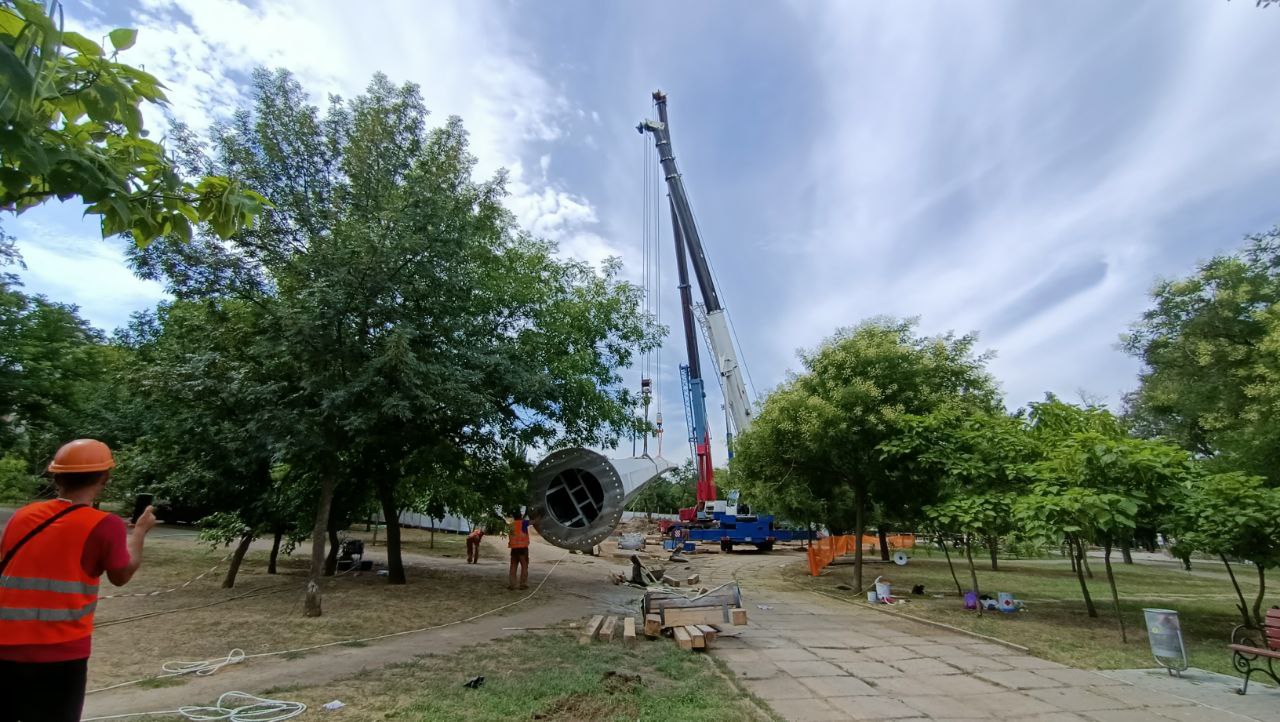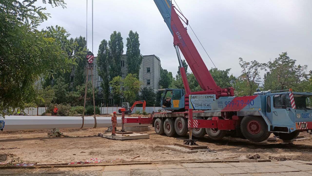 В среду днем, 4 августа, в Николаеве пытаются установить огромный флагшток в сквере «Юных героев».