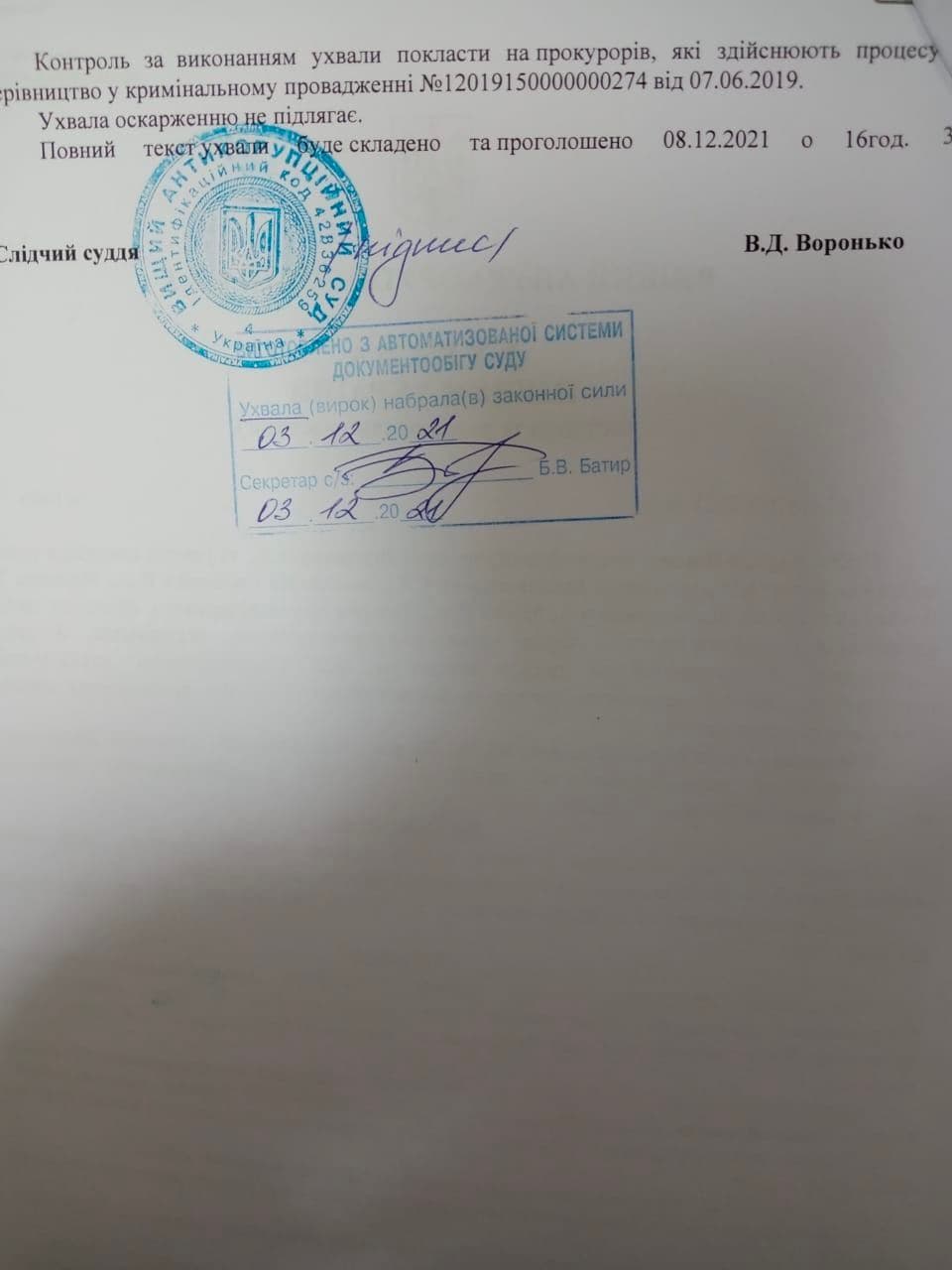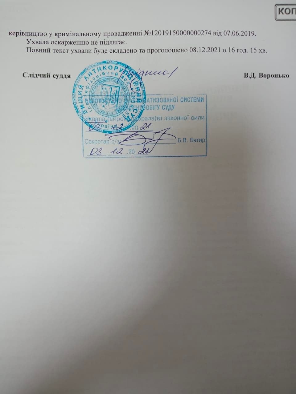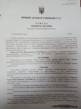 Такое решение 3 декабря принял следственный судья ВАКС Владимир Воронько.