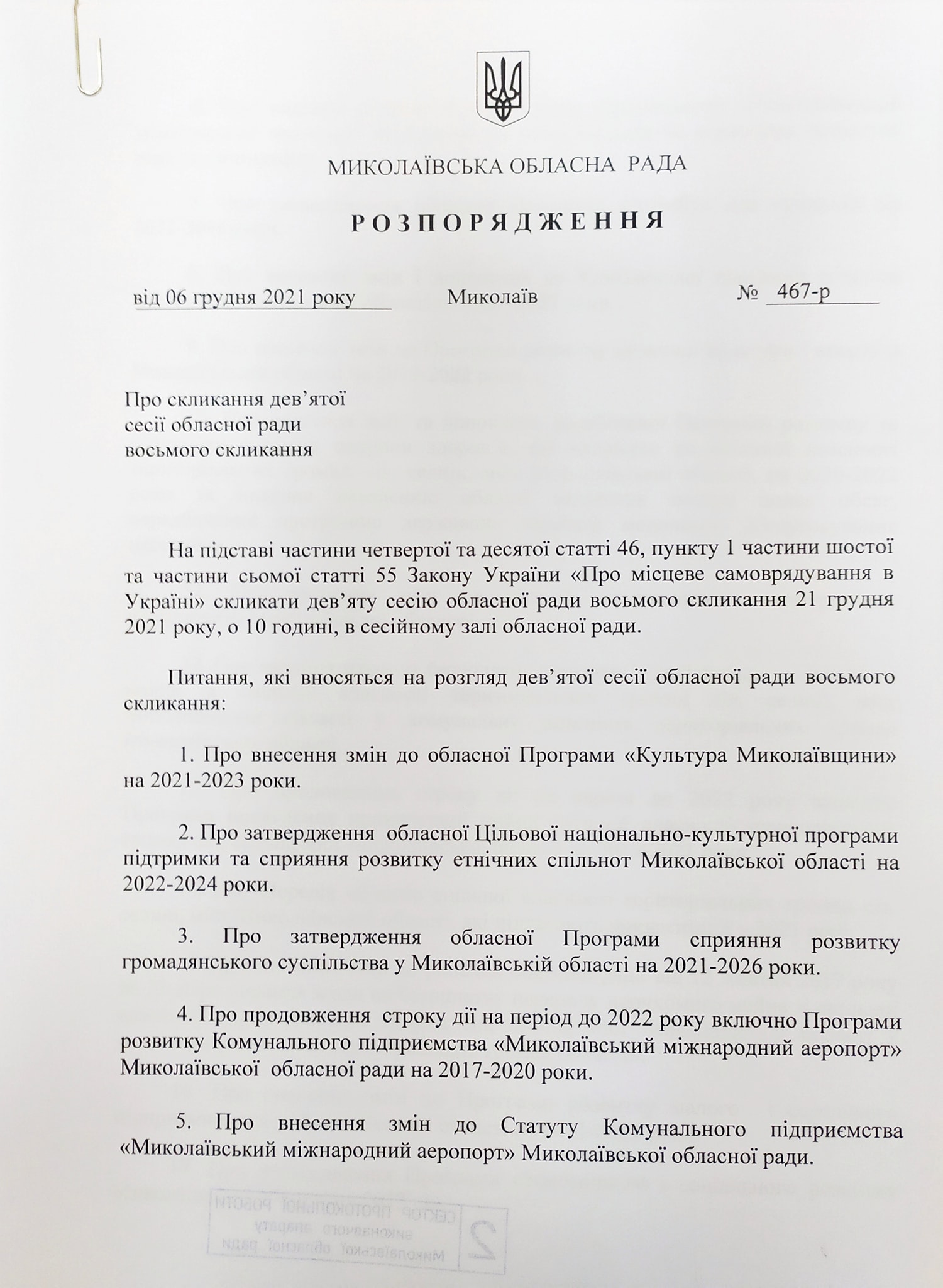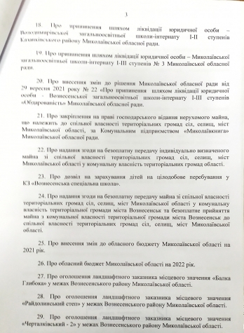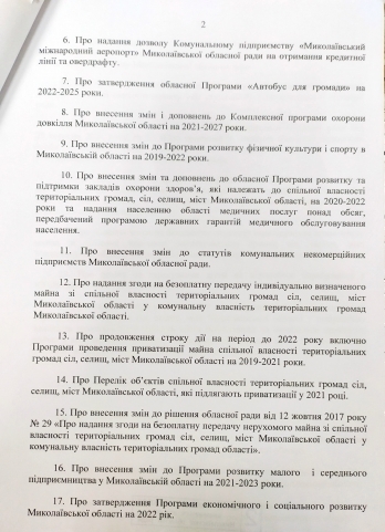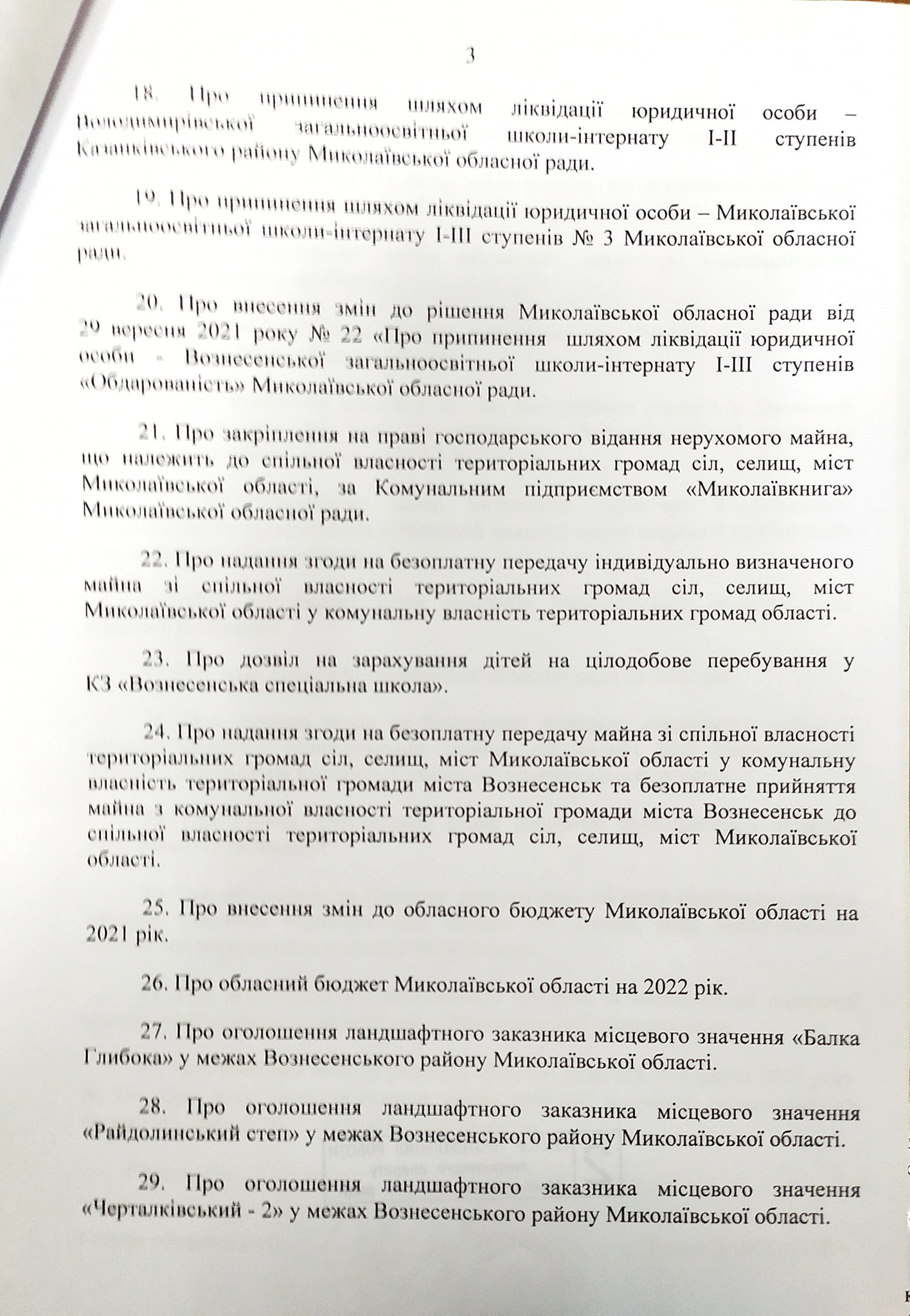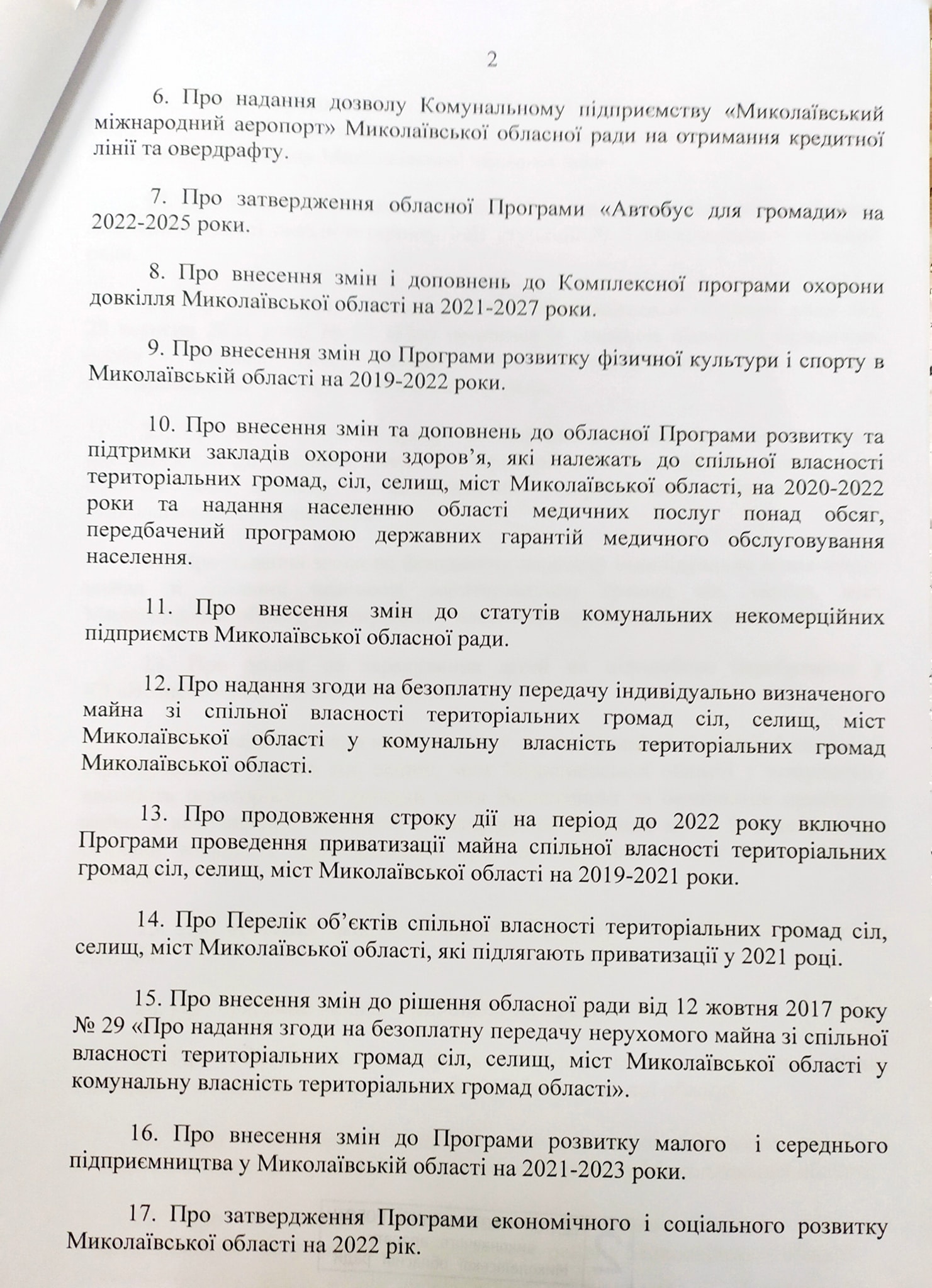 Она напомнила, что на 21 декабря запланирована 9-я сессия Николаевского областного совета. На заседании депутаты рассмотрят бюджет области на 2022 год, а также другие вопросы.
