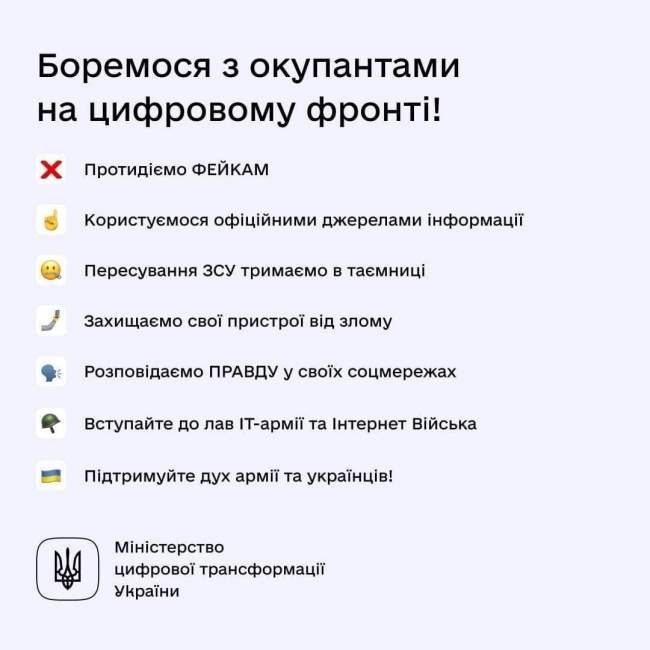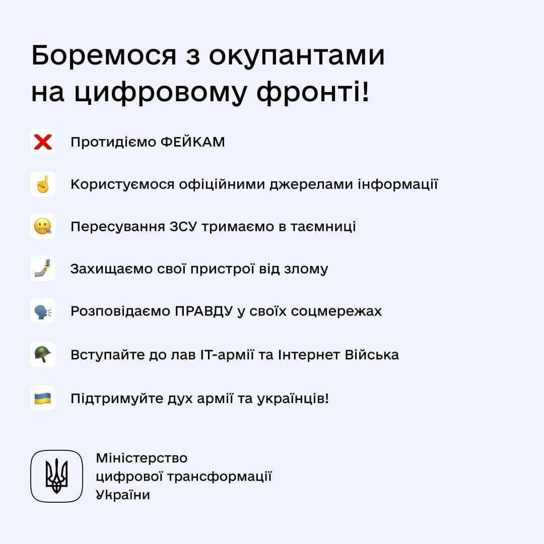 18:05 В Минцифре сделали короткую памятку как бороться с оккупантом на информационном фронте: