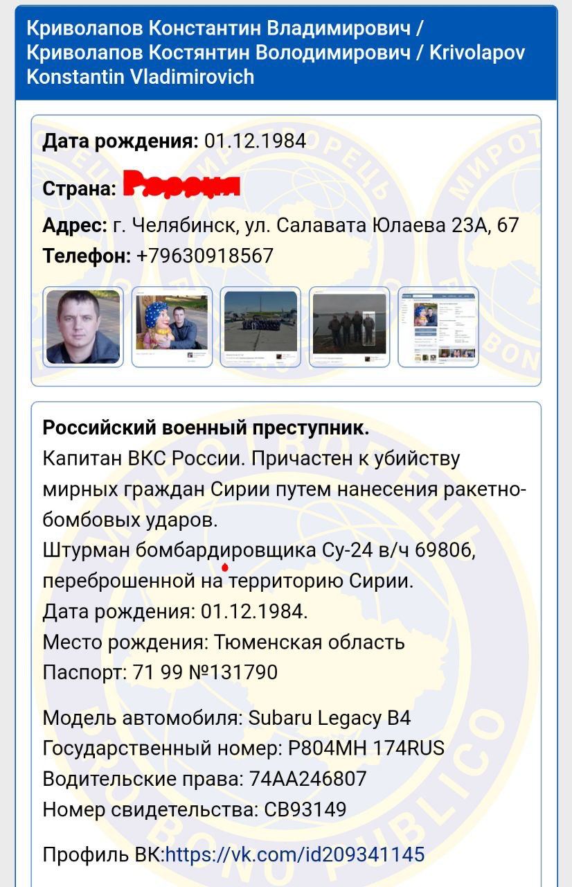 Он еще с 2015 года числится на Миротворце. Причастен к убийству мирных граждан Сирии путем нанесения ракетно-бомбовых ударов. На фото он засветился с Путиным и диктатором Хафезом Асадом.