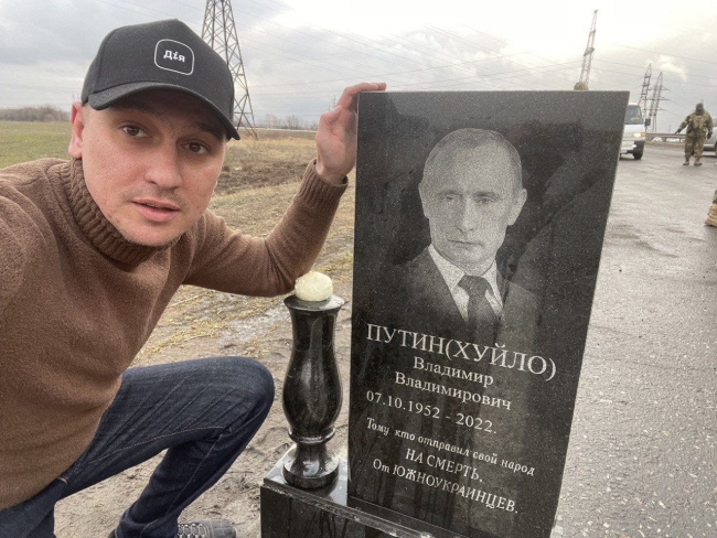 16:16 В Южноукраинске изготовили полноценное надгробие для президента РФ Владимира Путина. Вся Украина с нетерпением ждет, когда оно ему пригодится. На фото рядом с надгробием глава Вознесенской громады Евгений Величко.
