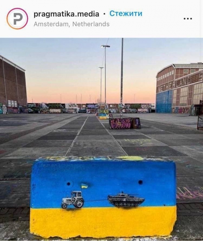 15:30 В Нидерландах в граффити увековечили украинских фермеров, которые утащили у оккупантов бронетехнику.