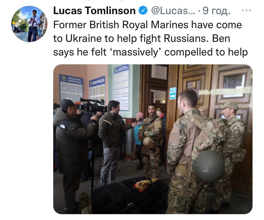 12:23 Бывшие британские королевские морпехи прибыли в Украину, чтобы защищать мирных жителей от оккупантов.
