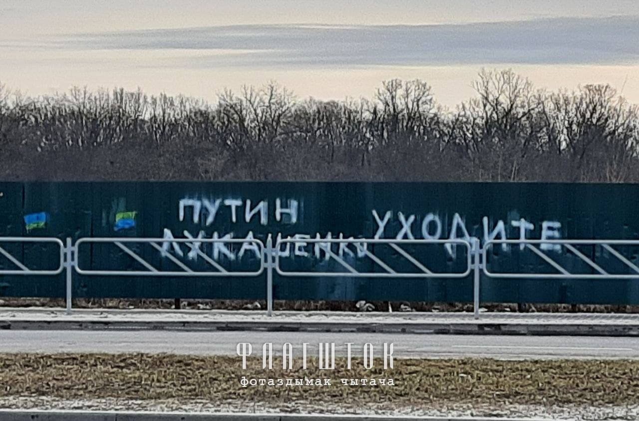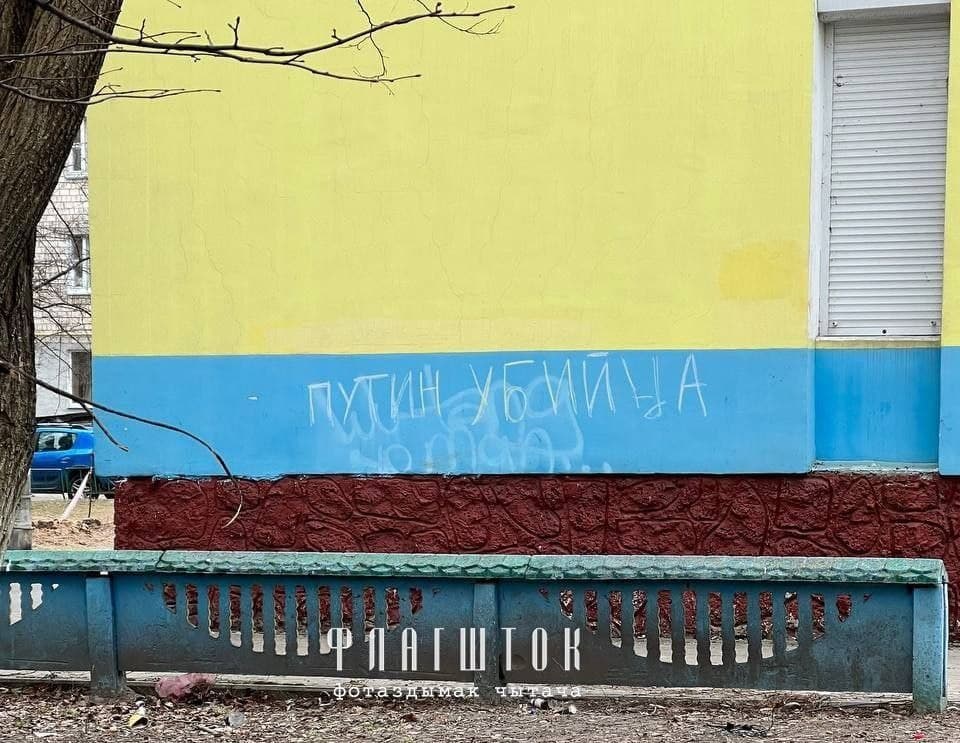 12:27 На улицах Беларуси появляется все больше лозунгов в поддержку Украины: «Лукапут уходи», «Русский иди н**й», «Нет войне».