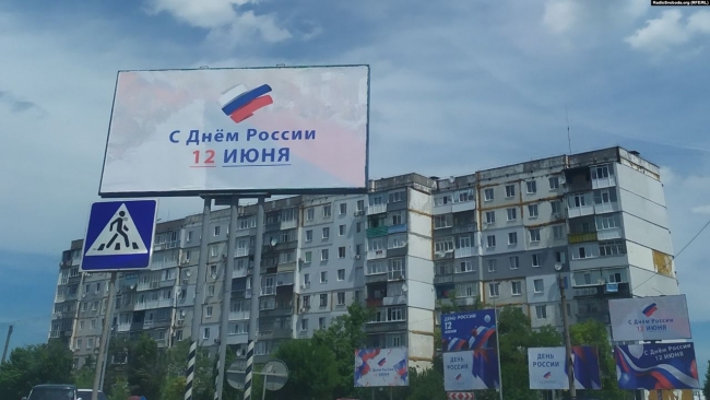 10:32 В оккупированном Бердянске Запорожской области жителей города поздравляют с российским государственным праздником – Днем России, который отмечается 12 июня. В городе уже появились тематические билборды.