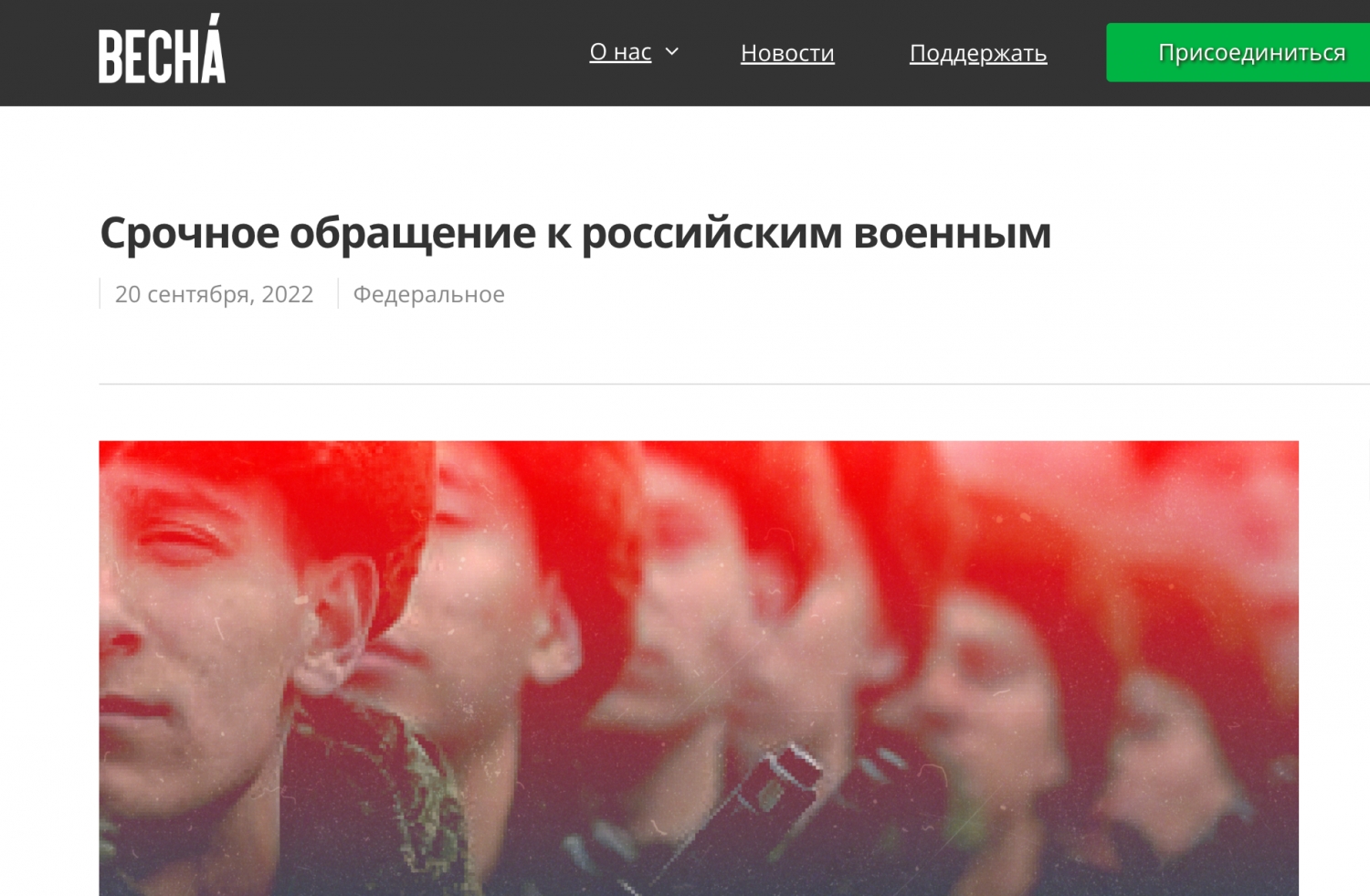 Таке звернення опубліковано на сайті російського руху «Весна».