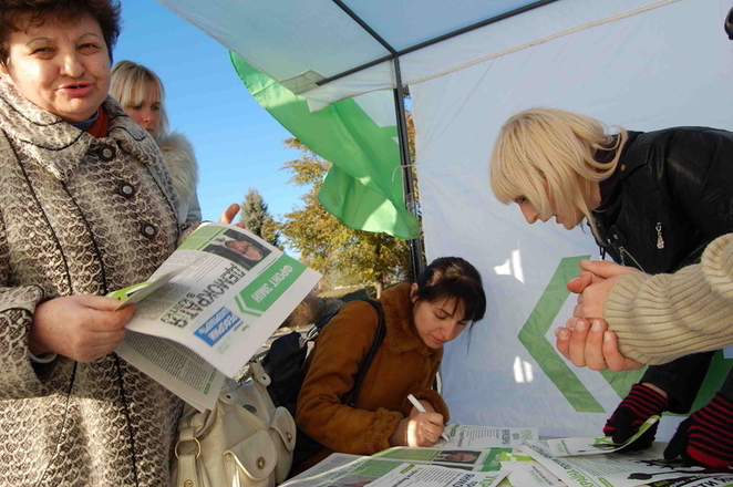 Мобильные общественные приёмные политической партии «Фронт Змин» продолжают плодотворный сбор подписей против Президента Украины Виктора Януковича.