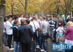 Получавшие деньги студенты были одеты в футболку с логотипом «75 років Миколаївській області». Отметим, что именно в таких футболках молодежь встречала главу государства возле Областного дворца культуры в Николаеве. Рабочий визит Президента Украины Виктора Януковича совпал с годовщиной празднования дня основания области.