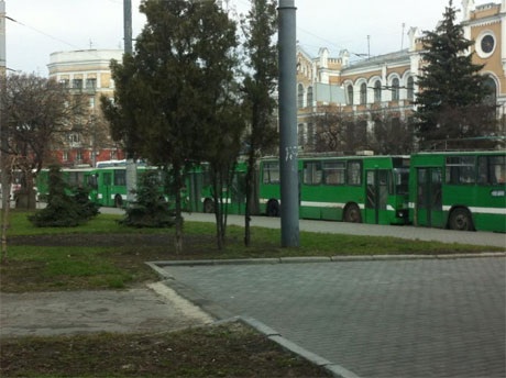 Также, как "Украинской правде" сообщил житель Харькова, рядом с площадью Руднева по проспекту Московскому стоит колона троллейбусов, которые перегородили вход на площадь со стороны проспекта. "По бокам наставлены маршрутки", - добавил собеседник.