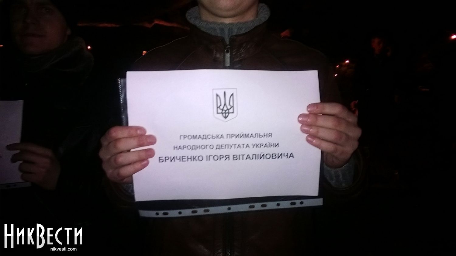 Отметим, что установленные на площади палатки считаются официальными депутатскими приемными народного депутата Украины Игоря Бриченко, что подтверждают предоставленные депутатом Николаевского облсовета Оксаной Янишевской уведомления от нардепа на имя секретаря Николаевского горсовета, исполняющего обязанности мэра Николаева Юрия Гранатурова.