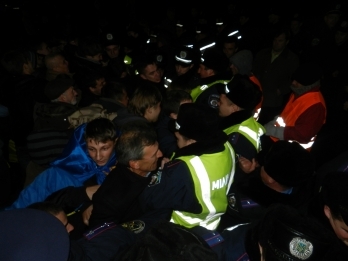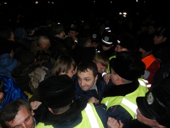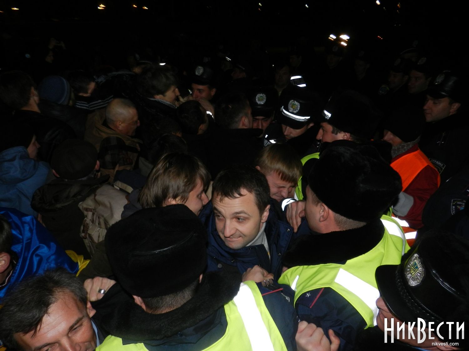 Милиция попыталась с помощью силового варианта разогнать митинг сторонников европейской интеграции в Николаеве, однако благодаря слаженным действиям общественных активистов и депутатов местных советов от оппозиции удалось дать отпор и отбить первый штурм силовиков.