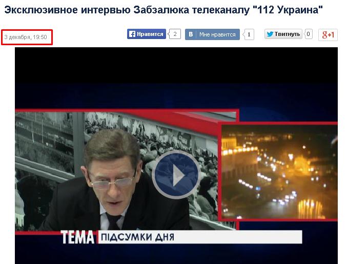 В тот же день, в эфире телеканала «112 Украина» Роман Забзалюк заявлял о том, что не видит необходимости в отставке Кабинета министров Николая Азарова.