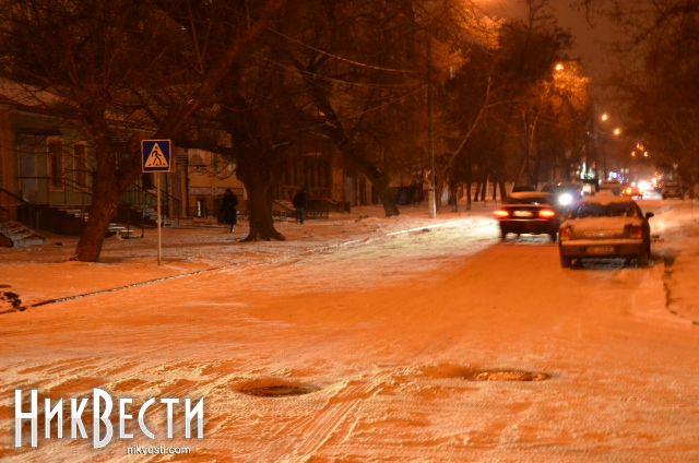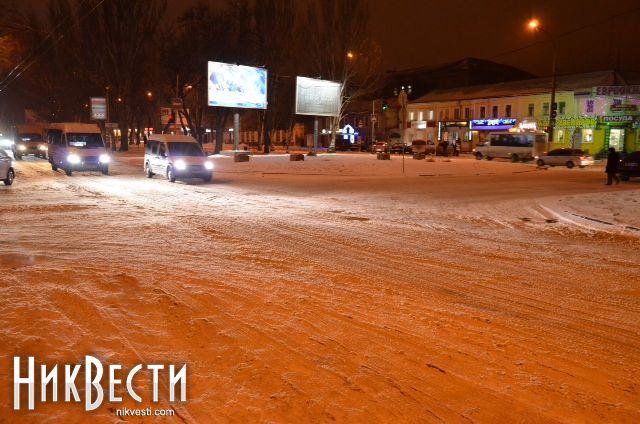 Засыпанные снегом дороги Николаева ночью польет дождь