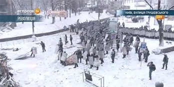 Спустя 20 минут после начала атаки "Беркут" зачистил улицу Грушевского от участников акции и принялся разбирать баррикады.