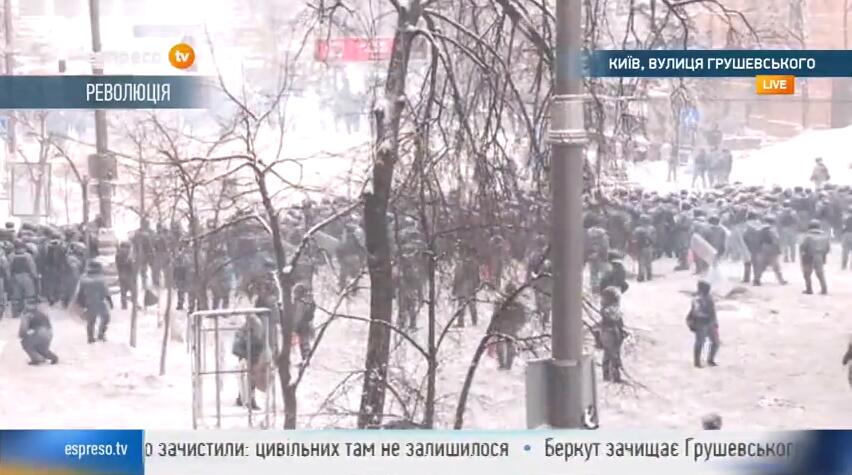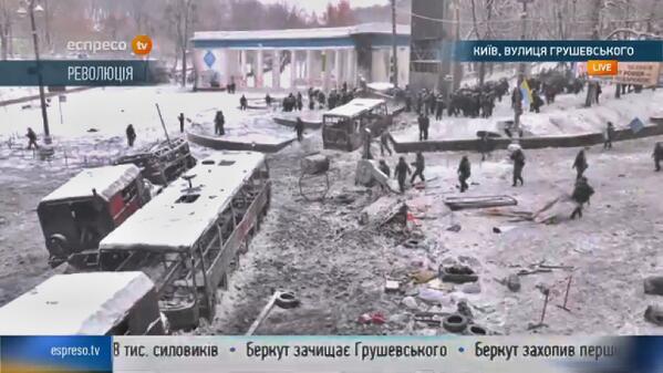 Ранее мы писали о том, что бойцы спецподразделения милиции "Беркут" вместе с внутренними войсками начали зачистку улицы Грушевского от протестующих.