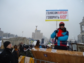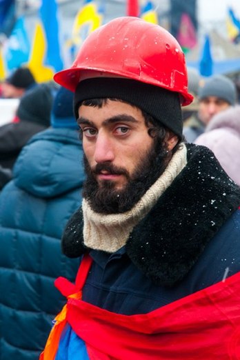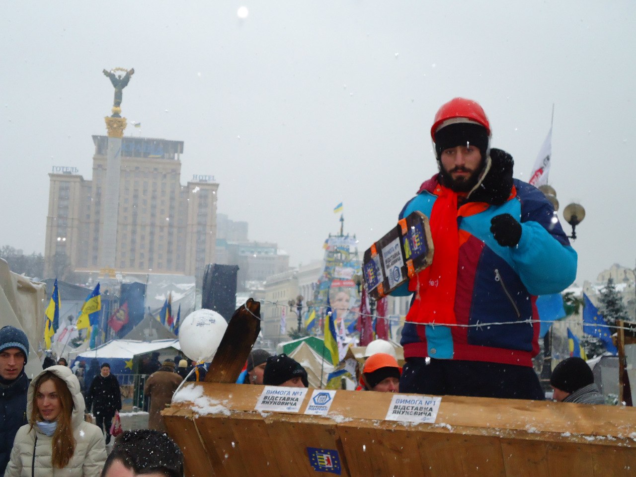 Ранее в декабре с Сергеем записали видео на фоне баррикад, где он читает Шевченко. Сергей - один из охранников Евромайдана. 20-летний парень, армянин из Днепропетровска.