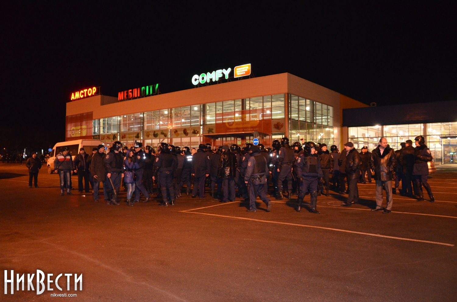 Но молодчики преследовали Майдан, пойдя в обход через Ингульский мост. В результате чего участники Майдана укрылись в магазине Praktiker, входы в который заблокировала милиция.