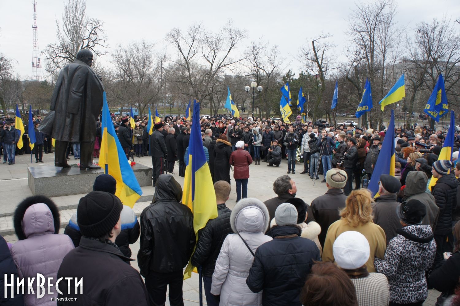 Сегодня, 9 марта, жители Николаева собралась у памятника Тарасу Шевченко для того, чтобы отметить 200-летие со дня рождения великого украинского поэта и художника.