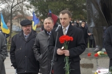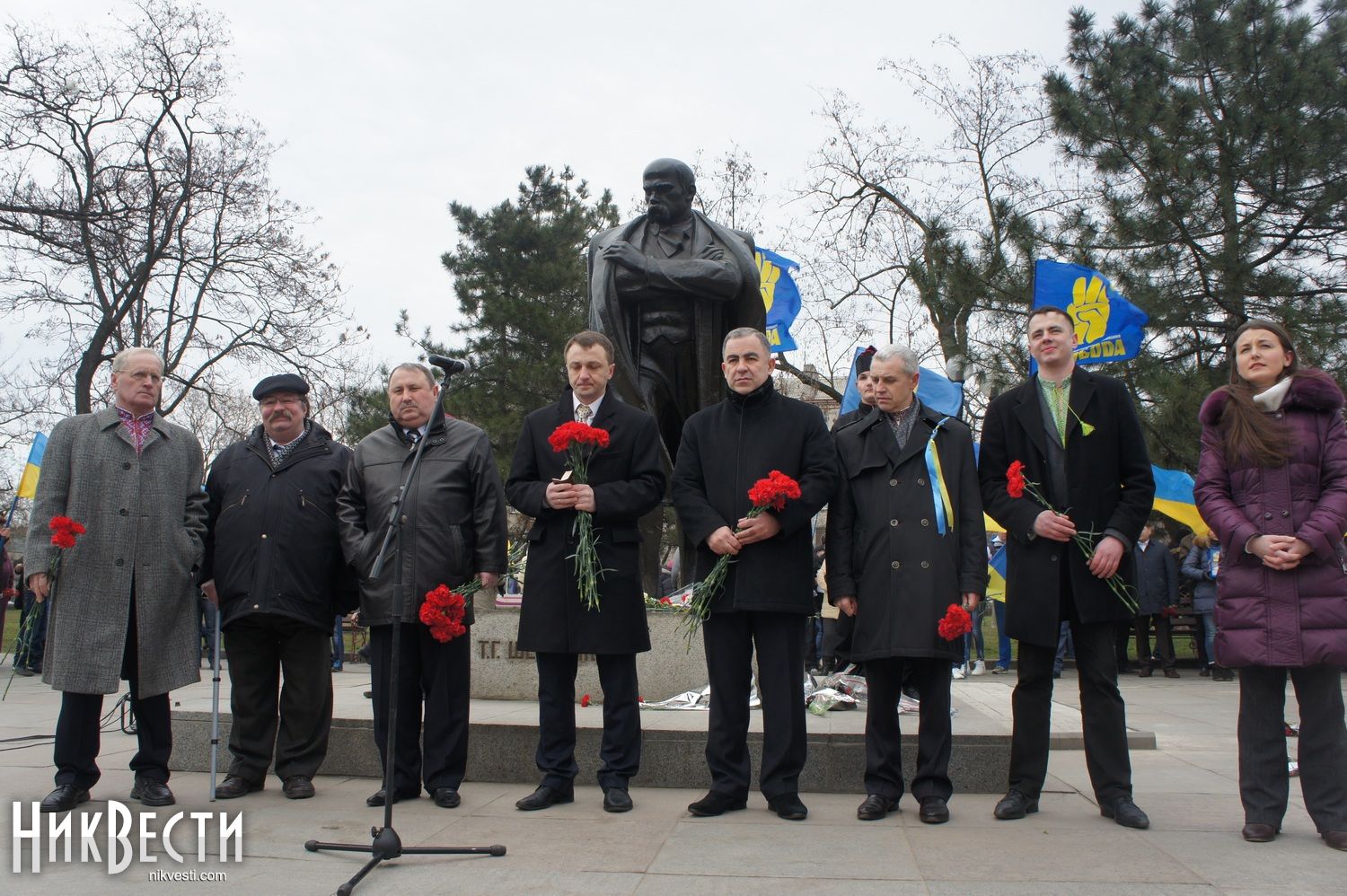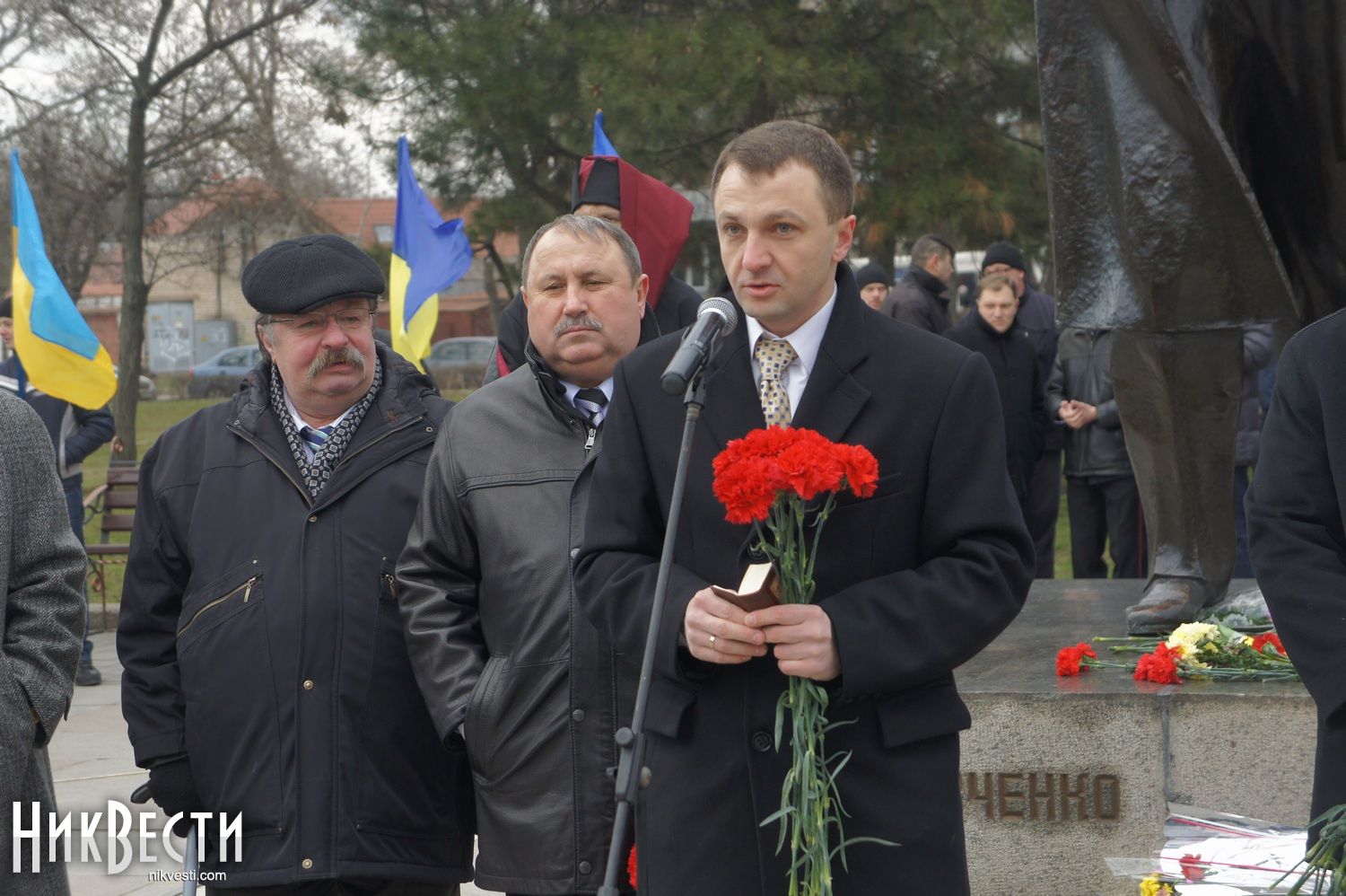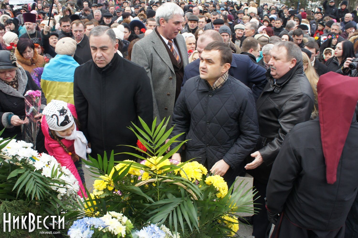 Возложить цветы пришли губернатор Николай Романчук, глава облсовета Тарас Креминь, секретарь горсовета Юрий Гранатуров, нардеп Игорь Бриченко, член политсовета ВО "Батьківщина" Вадим Мериков, а также депутаты областного и городского советов, - передает корреспондент НикВестей.