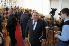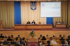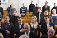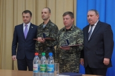 Перед началом сессии глава областного совета Тарас Креминь наградил командира бригады тактической авиации, ранее дислоцированной в Бельбеке, полковника Юлия Мамчура грамотой облсовета.