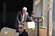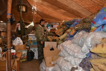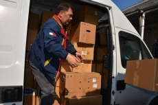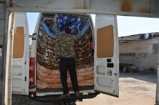 Микроавтобус догрузили матрасами (60 шт.), маскировочными сетками (35 шт.), продуктами питания и средствами личной гигиены.